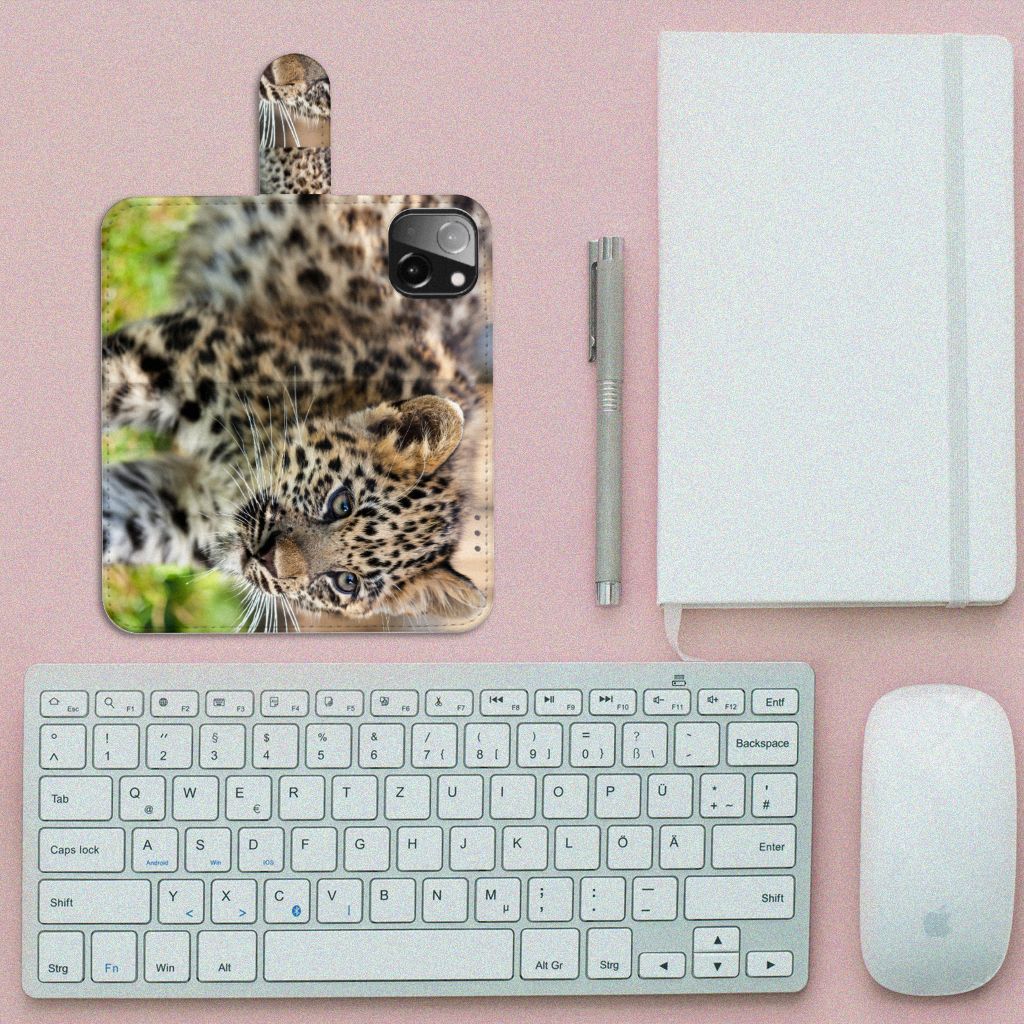iPhone 13 Mini Telefoonhoesje met magneetsluiting Baby Luipaard