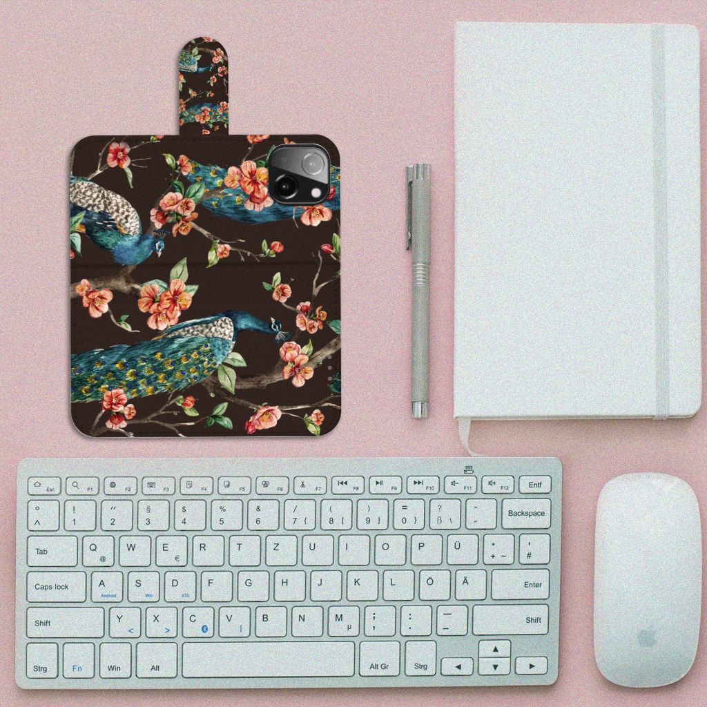 iPhone 13 Mini Telefoonhoesje sluit met magnetisch lipje Pauw | Bloemen
