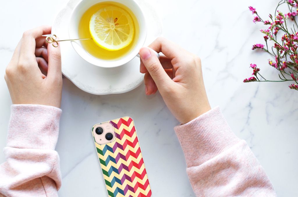 Ben je op zoek naar een uniek telefoonhoesje voor je iPhone 13 mini? Dan ben je bij B2C Telecom aan het juiste adres! Speciaal voor jou hebben we dit prachtige Zigzag Color design in onze collectie hoesjes opgenomen. Het design wordt bedrukt op een TPU bumper en is gemaakt van flexibel rubber. Het design wordt alleen aan de bovenkant van het hoesje bedrukt en de randen blijven transparant. Aan de zijkanten zijn uitsparingen gemaakt waardoor je met gemak alle knoppen en poorten kunt bedienen. Wij adviseren om dit hoesje in combinatie met een screenprotector te gebruiken voor een langere levensduur van je telefoon. Wil je dit design hoesje nog iets extra's geven? Voeg dan gratis je naam of een quote toe! Is dit design hoesje toch niet helemaal wat je zocht? Ontwerp dan zelf een hoesje in ons ontwerpprogramma.