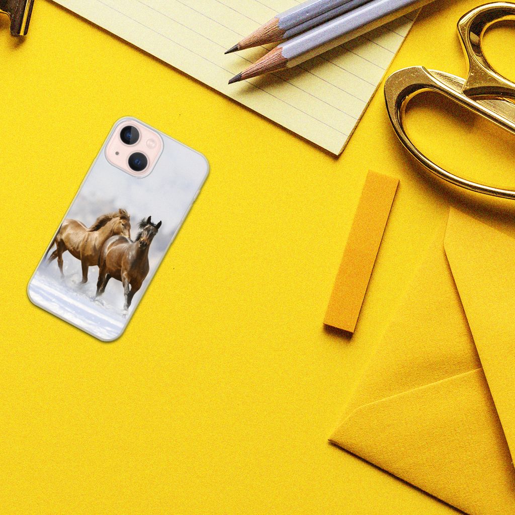 Voor de paardenliefhebbers onder ons hebben we onze collectie uitgebreid met dit design hoesje met print van paarden. Vroeger hield de mens vooral werkpaarden, inmiddels hebben we vriendschap gesloten met het paard. Vandaar dat het ook een favoriet dier is op onze smartphonehoesjes, zoals deze tpu case. Een TPU Hoesje voor de iPhone 13 mini met Paarden is niet alleen super mooi en chique, maar ook nog eens zeer flexibel. Verder is de case schokabsorberend en heeft het opstaande randen. Zie je liever je eigen paard terug op een hoesje. Dat kan! Door zelf een uniek hoesje te ontwerpen, met eigen foto’s en teksten. De TPU case wordt aan de bovenzijde bedrukt, de zijkanten blijven transparant.