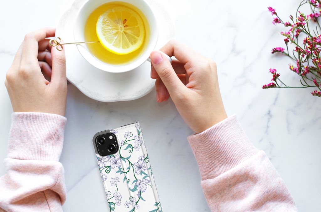 Witte bloemen staan voor puurheid, frisheid, helderheid en eenvoud. Geen wonder dus dat ze al heel lang populair zijn en ook prachtig staan op een telefoonhoesje. Niet iedereen houdt immers van kleurrijke designs. Toch graag bloemetjes op je Smart Cover maar zonder bonte kleuren? Dan is dit hoesje voor de iPhone 13 Mini perfect voor jou. Dit populaire smartphonehoesje heeft één vakje voor een pasje of briefgeld en is aan alle zijden bedrukt. Met de standcase zet je je telefoon gemakkelijk neer, zodat je je handen vrij hebt als je bijvoorbeeld een video wilt kijken. De binnenkant van de standcase is van grijs PU-leer. Dat is fijn, omdat je daardoor niet snel vlekken ziet op je hoesje.