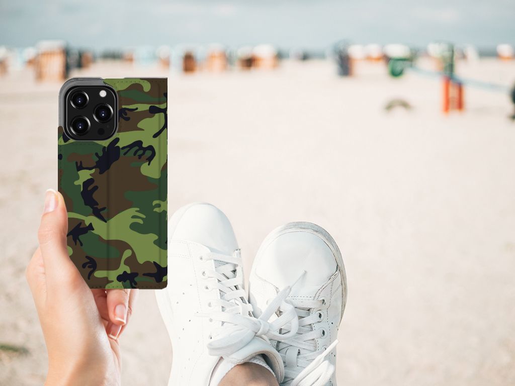 Voel je jezelf verbonden met het leger, dan zal deze iPhone 13 Pro Hoesje met Magneet je zeker bevallen. Het design hoesje beschikt namelijk over donkere camouflage kleuren. Deze worden vaak gebruikt door mensen die zich graag willen mengen in hun omgeving. Dit Army Dark hoesje is er dus voornamelijk in kleuren die in de natuur voorkomen, zodat je één wordt met je achtergrond. Beschermt de krijgsmacht volk en vaderland, dit hoesje in donkere camouflage kleuren zal jouw telefoon onder alle omstandigheden schadevrij houden. Met een hoesje in dit soort kleuren zal je niet zo snel opvallen. Wel is het echter een hele stoere case. Het design staat op een stand case. Deze case beschermt jouw telefoon aan alle kanten en beschikt over een 1 opbergvakje en een speciale standaard. Het hoesje wordt afgesloten met een magneet aan de binnenzijde. De houder aan de binnenzijde is van TPU. Alle zijden van de case worden bedrukt met donkere camouflage kleuren.