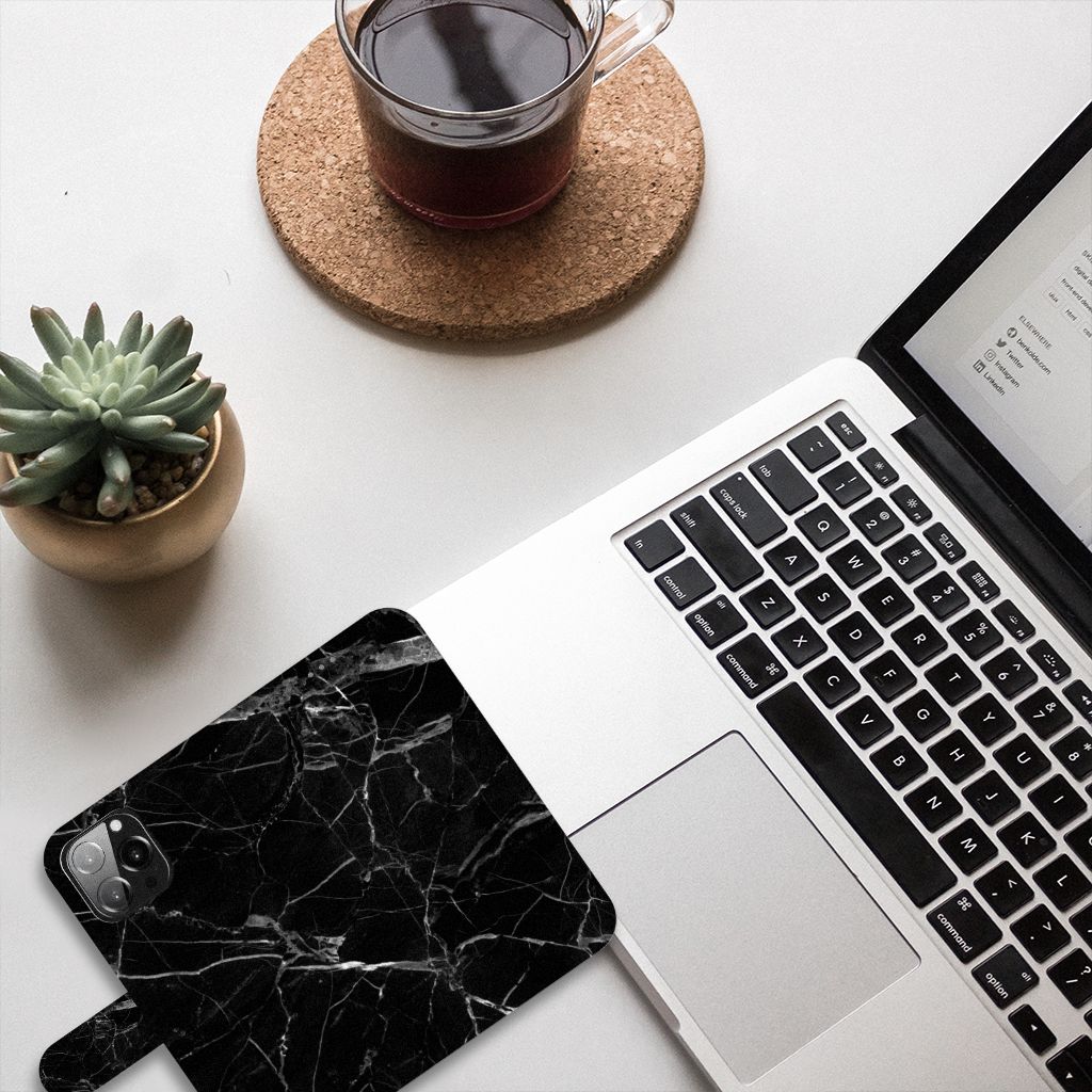 iPhone 13 Pro Max Bookcase Marmer Zwart