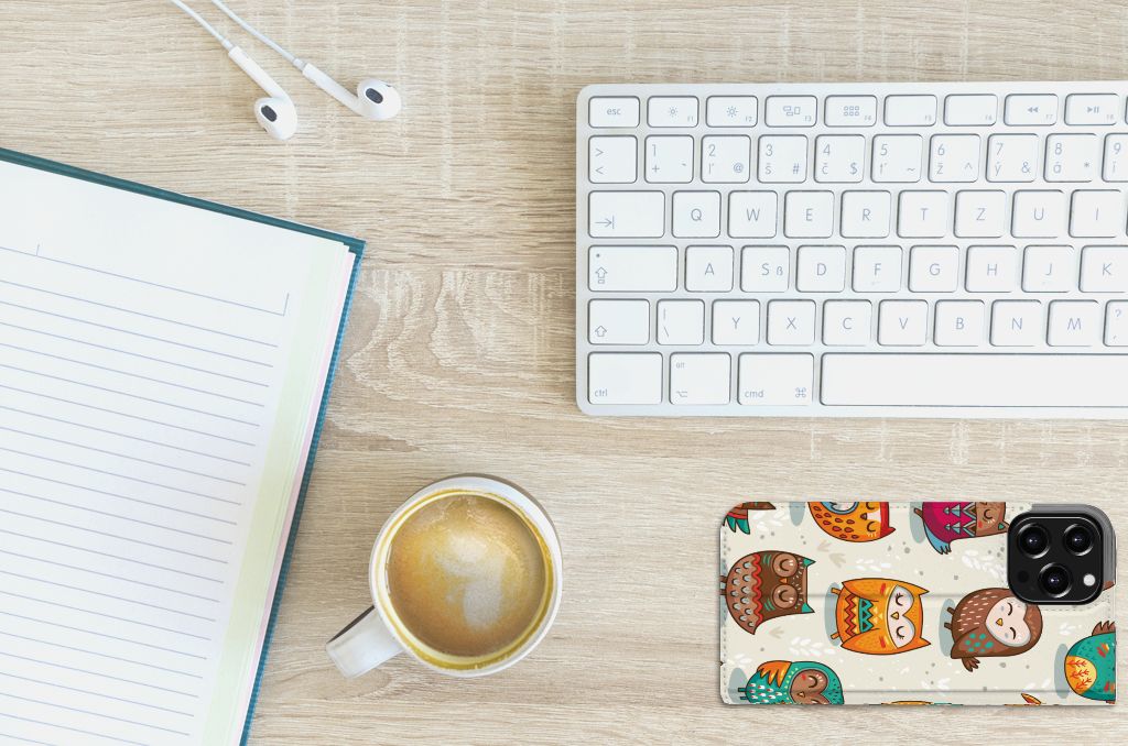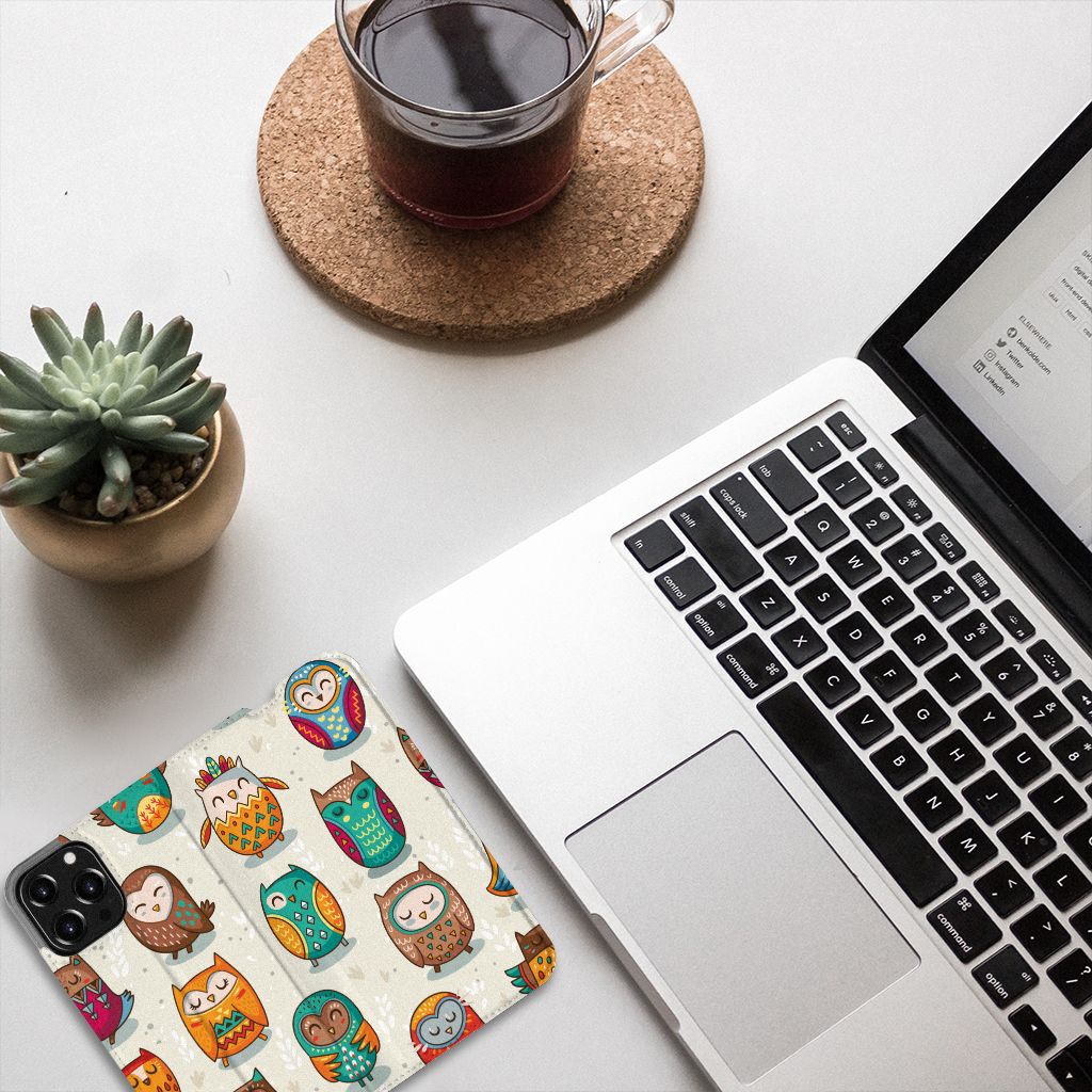 Deze iPhone 13 Pro Max Hoesje maken met Vrolijke Uilen is echt iets voor de nachtbrakers onder ons. De uil is zoals je weet bij uitstek een vogel die in de nachtelijke uren actief is. Ben jij ook iemand die s ’nachts tot leven komt, dan is deze stand case met uilen in felle kleuren echt iets voor jou. Als je tot in de late uurtjes op stap bent, komt het goed uit dat jouw smartphone aan alle kanten goed is beschermd met deze stand case met uilen. De case met uilen heeft een magnetische sluiting aan de binnenkant, waardoor de hoes niet openklapt als die uit je handen valt. Jouw creditcard of pinpas heb je als het goed is veilig opgeborgen in het vakje aan de binnenzijde. De houder aan de binnenzijde van de case met print van uilen is van het flexibele TPU. De wat ruigere types hebben veel baat bij deze stand case met uilen in felle kleuren.