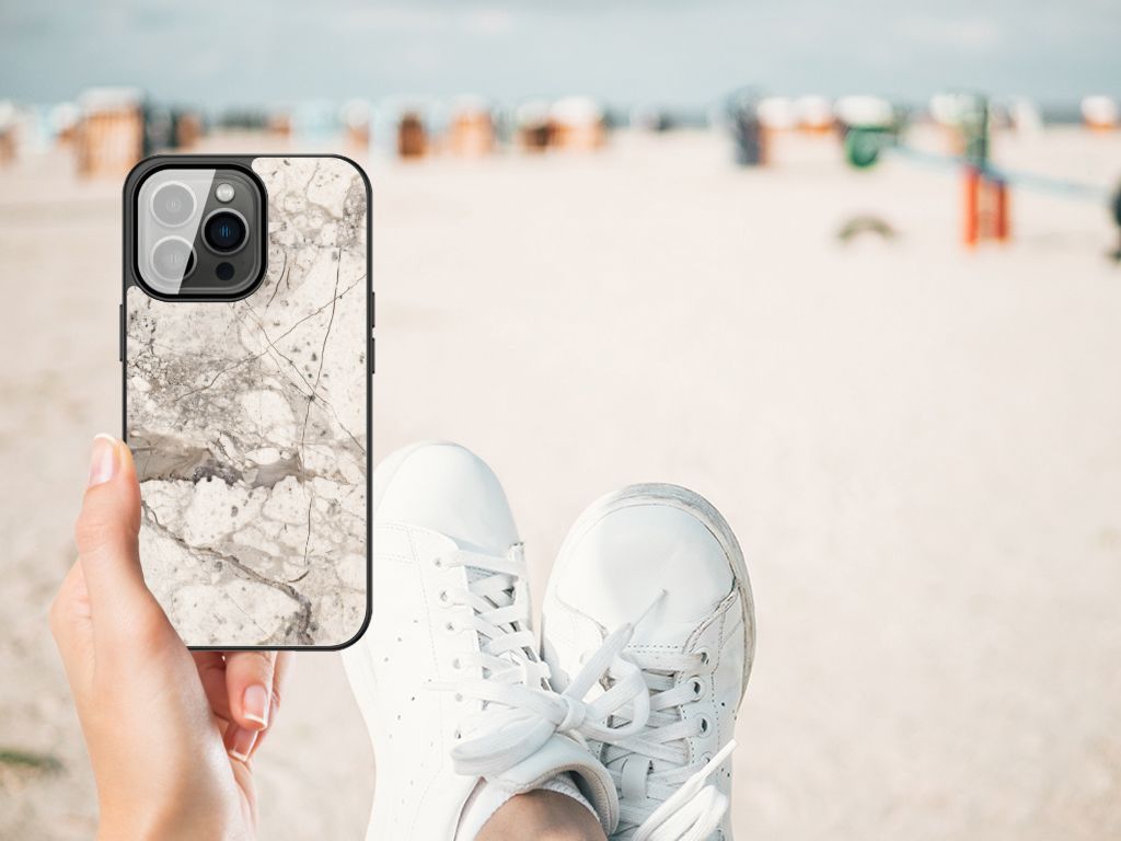 iPhone 13 Pro Max Marmeren Print Telefoonhoesje Marmer Zwart - Origineel Cadeau Vader