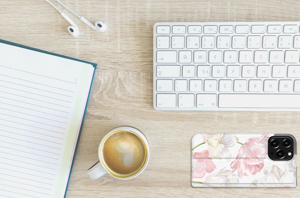 Een bosje bloemen doet een mens (en zijn smartphone) goed. De witte en roze bloemen op dit iPhone 13 Pro Max Smart Cover geven jouw smartphone een zeer mooie uitstraling. Je wordt er ook meteen een stuk rustiger van als je aan het appen of aan het bellen bent. Valt dan je telefoon op de grond, dan zal er dankzij de stand case met het design Lovely Flowers ontstaan. Onze stand cases met roze en witte bloemen zien er zeer prettig uit en zijn heel praktisch, wat blijkt uit onder meer het vakje aan de binnenkant en de handige standaard waarmee je de smartphone rechtop op tafel neer kunt zetten. De roze en witte bloemen passen goed op alle zijden van de case. Op deze stand case van leer en TPU (houder aan de binnenkant) kun je trouwens ook je eigen bloemige ontwerp zetten. In een paar simpele stappen maak je zelf een stand hoesje met daarop jouw mooiste bloemen.