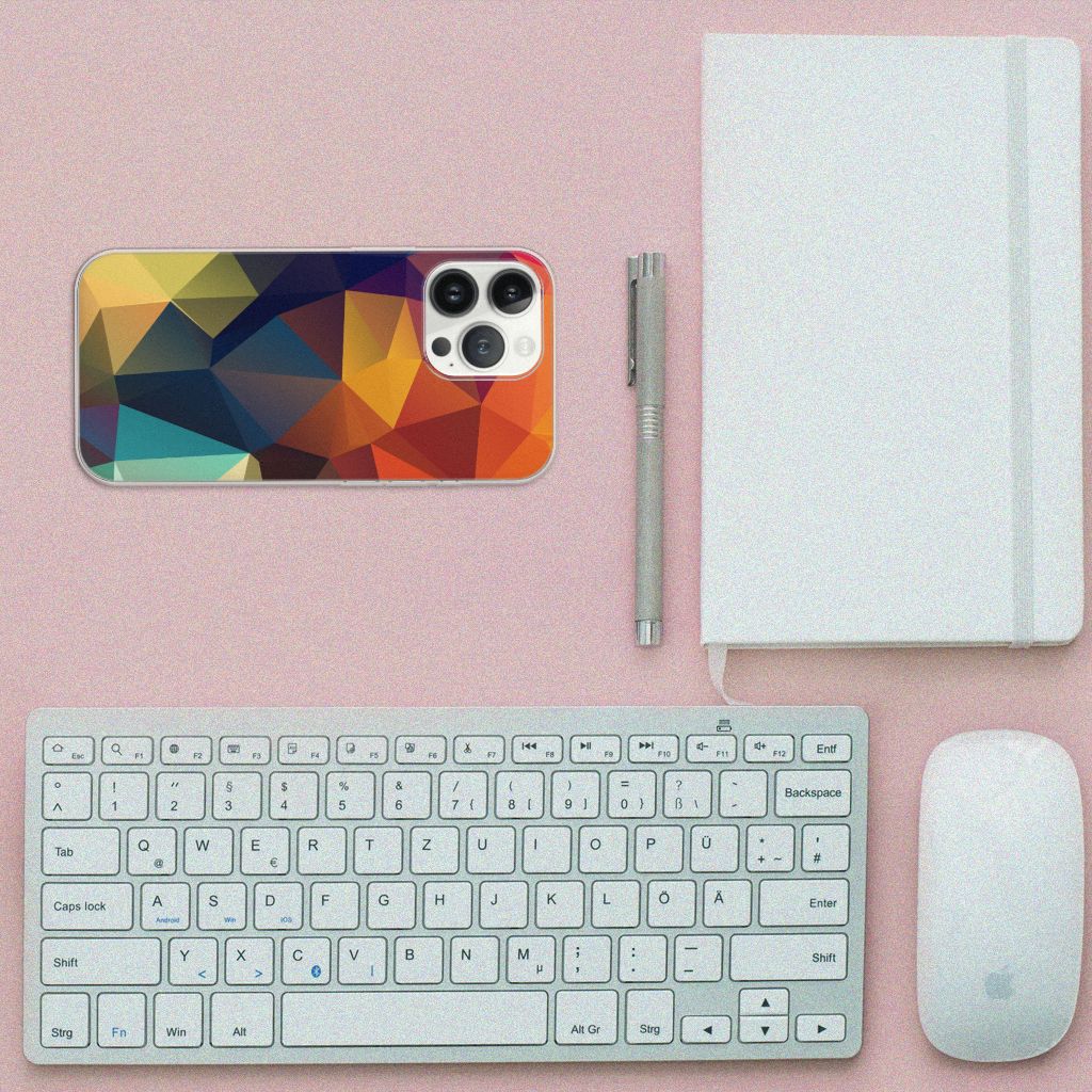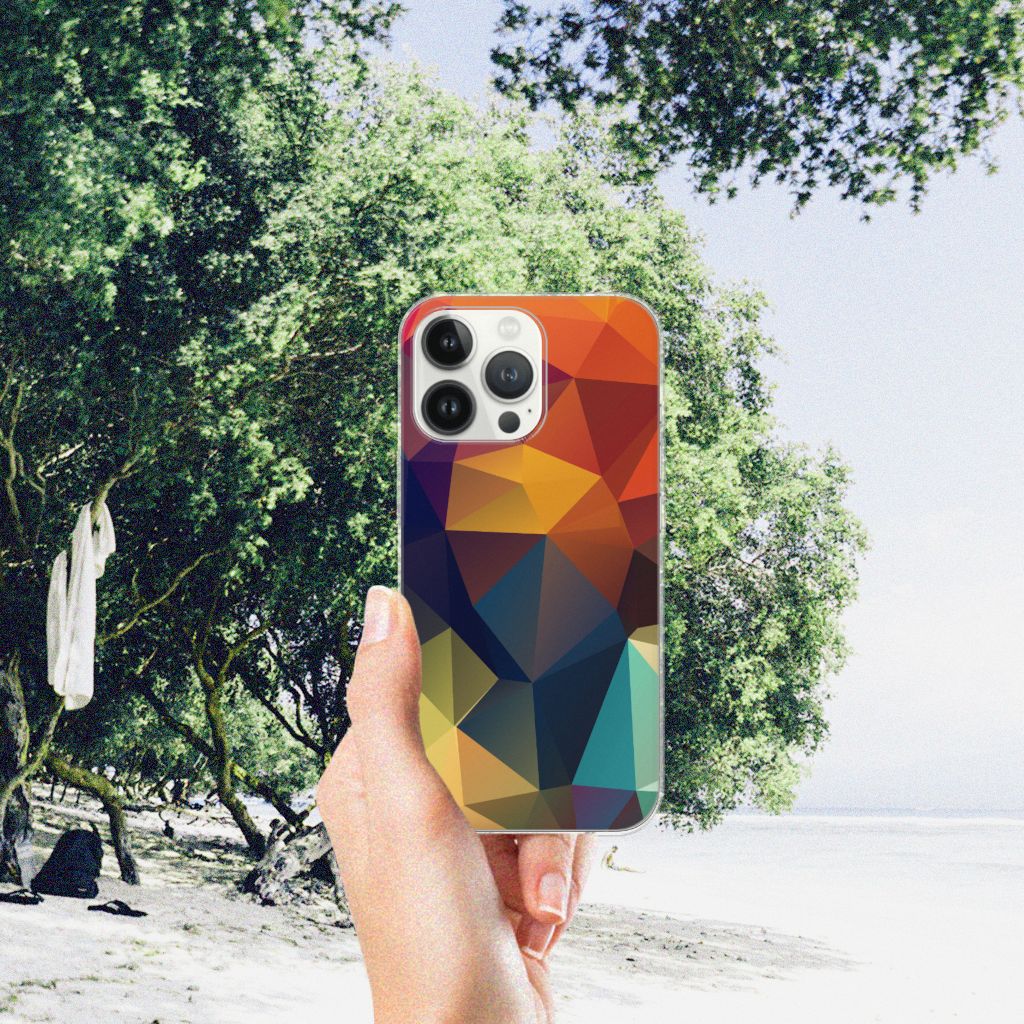 Veelkleurige driehoeken die samen eindeloze asymmetrische patronen lijken te vormen. Het is het abstracte schouwspel dat op dit fraaie hoesje voor je iPhone 13 Pro Max direct de aandacht trekt noemen we voor het gemak trekt noemen we voor het gemak Polygon Color. De een ziet er een berglandschap in, de ander piramides. Wat zie jij erin? Zeker is in elk geval dat de aanblik van dit fascinerende ontwerp je niet snel gaat vervelen. Het kleurige spel van lijnen en vlakken blijft eindeloos boeien en geeft jouw TPU Hoesje een hippe en kunstzinnige uitstraling. De kracht die het lijnenspel uitstraalt, komt ook terug in het hoesje zelf. Dit hoesje wordt alleen aan de bovenkant bedrukt en is zeer flexibel. De randen van het hoesje blijven transparant. Wat wil je nog meer?