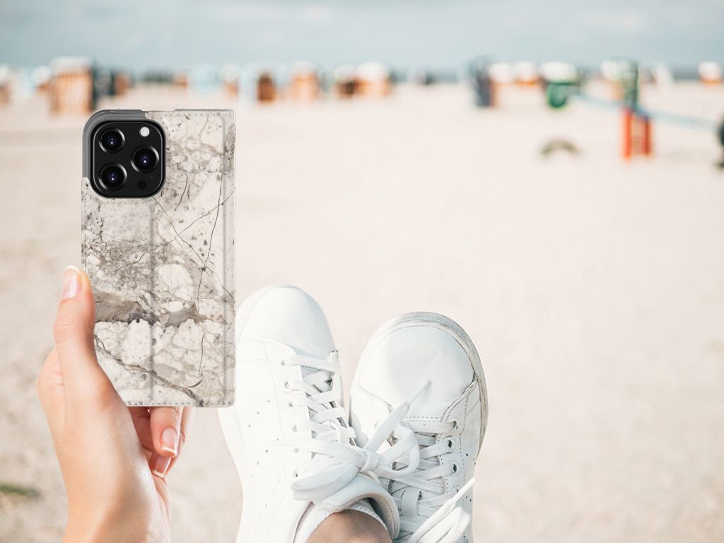 Dit design hoesje met Marmer Beige is voor de artistieke personen onder ons. De Grieken en Romeinen wisten het steen al te waarderen door het als bouw- en bekledingsmateriaal toe te passen. Naast het witte Carrara marmer met haar zacht grijze geaderde belijning zijn de diverse marmersoorten in een ruim kleurenpallet te krijgen. We hebben verschillende kleuren op design hoesjes gezet, zoals in dit geval beige marmer. Dit is een iPhone 13 Pro Standcase met marmer in beige kleur. Het marmer wordt bedrukt op alle zijden van een stand case, die beschikt over 1 vakje voor een pasje en toebehoren en een magnetische sluiting aan de binnenkant. Verder heeft de case een houder van TPU. De rijkheid aan kleuren en varianties in afwerking geeft designers de vrijheid om met marmer hele mooie architectonische projecten te realiseren. Wij hebben onze designer ook veel vrijheid gegeven. Het resultaat zie je terug in deze stand case met beige marmer, dat de ideale bescherming voor jouw smartphone biedt.