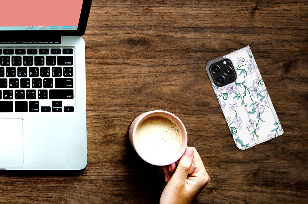 Witte bloemen staan voor puurheid, frisheid, helderheid en eenvoud. Geen wonder dus dat ze al heel lang populair zijn en ook prachtig staan op een telefoonhoesje. Niet iedereen houdt immers van kleurrijke designs. Toch graag bloemetjes op je Smart Cover maar zonder bonte kleuren? Dan is dit hoesje voor de iPhone 13 Pro perfect voor jou. Dit populaire smartphonehoesje heeft één vakje voor een pasje of briefgeld en is aan alle zijden bedrukt. Met de standcase zet je je telefoon gemakkelijk neer, zodat je je handen vrij hebt als je bijvoorbeeld een video wilt kijken. De binnenkant van de standcase is van grijs PU-leer. Dat is fijn, omdat je daardoor niet snel vlekken ziet op je hoesje.