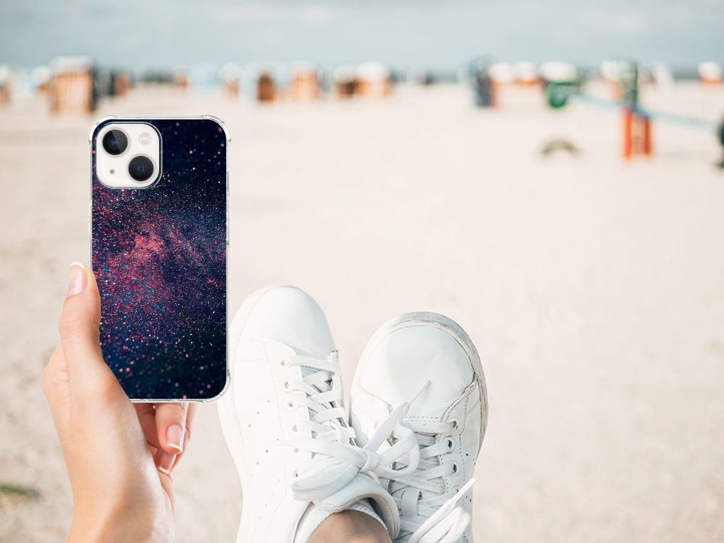 Ben je op zoek naar een uniek telefoonhoesje voor je iPhone 13? Dan ben je bij B2C Telecom aan het juiste adres! Speciaal voor jou hebben we dit prachtige Stars design in onze collectie hoesjes opgenomen. Het design wordt bedrukt op een Shockproof Case en is gemaakt van flexibel rubber. Het hoesje is perfect voor de actieve smartphonegebruiker door de opstaande randen/hoeken. Denk aan mensen die veel sporten, reizen of wandelen en net iets meer zekerheid willen als het op hun geliefde telefoon aankomt. Het design wordt alleen aan de bovenkant van het hoesje bedrukt en de randen blijven transparant. Aan de zijkanten zijn uitsparingen gemaakt waardoor je met gemak alle knoppen en poorten kunt bedienen. Wij adviseren om dit hoesje in combinatie met een screenprotector te gebruiken voor een langere levensduur van je telefoon. Wil je dit hoesje nog iets extra's geven? Voeg dan gratis je naam of een quote toe! Is dit design hoesje toch niet helemaal wat je zocht? Ontwerp dan zelf een hoesje in ons ontwerpprogramma.