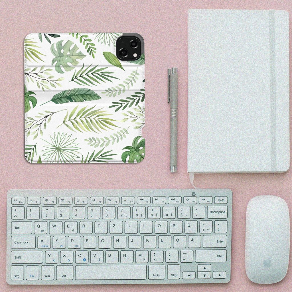 Je voelt je verbonden met de natuur als je kiest voor deze iPhone 13 Smart Cover met print Leaves. De print bestaat uit verschillende groene bladeren en dit zorgt voor een fraai decoratief geheel. Met dit patroon van groene bladeren creëer je een frisse uitstraling voor jouw smartphone. Jij doet er verstandig aan om je telefoon te beschermen met dit design hoesje met groene bladeren, die staan op een stand case. Dit hoesje kenmerkt zich onder meer door het handige vakje aan de binnenzijde en de magnetische sluiting aan de binnenzijde. Voel jij jezelf gezond met een beeld van groene bladeren, dan is deze stand case met print een uitstekende optie. Het beschermt jouw telefoon aan alle zijden. Het TPU aan de binnenzijde klemt zich perfect om jouw smartphone. Kijk ook eens naar onze andere hoesjes met bladeren of misschien maak je zelf wel gewoon liefst je eigen hoesje met eigen foto’s van bladeren.