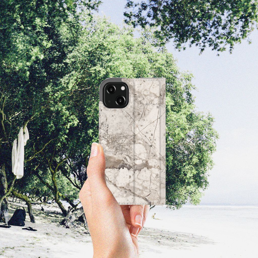 Dit design hoesje met Marmer Beige is voor de artistieke personen onder ons. De Grieken en Romeinen wisten het steen al te waarderen door het als bouw- en bekledingsmateriaal toe te passen. Naast het witte Carrara marmer met haar zacht grijze geaderde belijning zijn de diverse marmersoorten in een ruim kleurenpallet te krijgen. We hebben verschillende kleuren op design hoesjes gezet, zoals in dit geval beige marmer. Dit is een iPhone 13 Standcase met marmer in beige kleur. Het marmer wordt bedrukt op alle zijden van een stand case, die beschikt over 1 vakje voor een pasje en toebehoren en een magnetische sluiting aan de binnenkant. Verder heeft de case een houder van TPU. De rijkheid aan kleuren en varianties in afwerking geeft designers de vrijheid om met marmer hele mooie architectonische projecten te realiseren. Wij hebben onze designer ook veel vrijheid gegeven. Het resultaat zie je terug in deze stand case met beige marmer, dat de ideale bescherming voor jouw smartphone biedt.