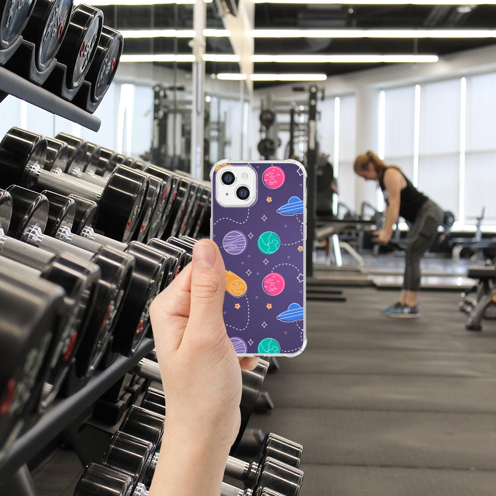 Ben je op zoek naar een uniek telefoonhoesje voor je iPhone 14? Dan ben je bij B2C Telecom aan het juiste adres! Speciaal voor jou hebben we dit prachtige Space design in onze collectie hoesjes opgenomen. Het design wordt bedrukt op een Anti Shock Bumper Case en is gemaakt van flexibel rubber. Het hoesje is perfect voor de actieve smartphonegebruiker door de opstaande randen/hoeken. Denk aan mensen die veel sporten, reizen of wandelen en net iets meer zekerheid willen als het op hun geliefde telefoon aankomt. Het design wordt alleen aan de bovenkant van het hoesje bedrukt en de randen blijven transparant. Aan de zijkanten zijn uitsparingen gemaakt waardoor je met gemak alle knoppen en poorten kunt bedienen. Wij adviseren om dit hoesje in combinatie met een screenprotector te gebruiken voor een langere levensduur van je telefoon. Wil je dit hoesje nog iets extra's geven? Voeg dan gratis je naam of een quote toe! Is dit design hoesje toch niet helemaal wat je zocht? Ontwerp dan zelf een hoesje in ons ontwerpprogramma.