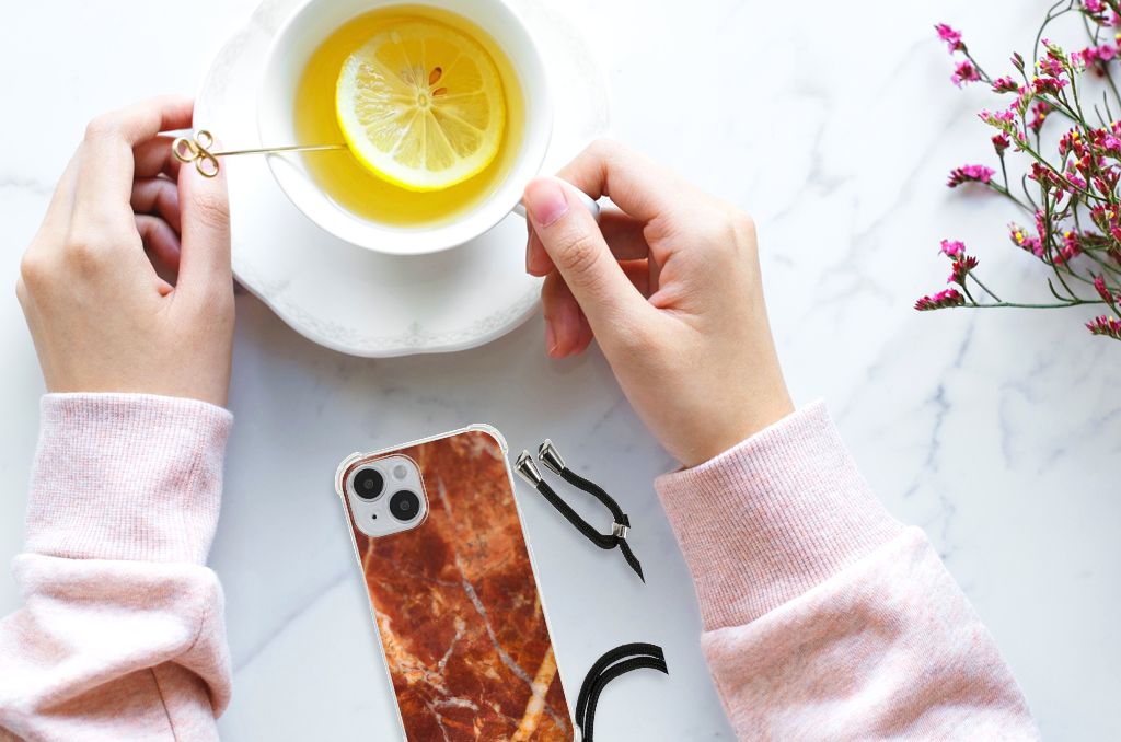 Ben je op zoek naar een uniek telefoonhoesje voor je iPhone 14? Dan ben je bij B2C Telecom aan het juiste adres! Speciaal voor jou hebben we dit prachtige Marmer Bruin design in onze collectie hoesjes opgenomen. Het design wordt bedrukt op een Anti-Shock Hoesje en is gemaakt van flexibel rubber. Het hoesje is perfect voor de actieve smartphonegebruiker door de opstaande randen/hoeken. Denk aan mensen die veel sporten, reizen of wandelen en net iets meer zekerheid willen als het op hun geliefde telefoon aankomt. Het design wordt alleen aan de bovenkant van het hoesje bedrukt en de randen blijven transparant. Aan de zijkanten zijn uitsparingen gemaakt waardoor je met gemak alle knoppen en poorten kunt bedienen. Wij adviseren om dit hoesje in combinatie met een screenprotector te gebruiken voor een langere levensduur van je telefoon. Wil je dit hoesje nog iets extra's geven? Voeg dan gratis je naam of een quote toe! Is dit design hoesje toch niet helemaal wat je zocht? Ontwerp dan zelf een hoesje in ons ontwerpprogramma.