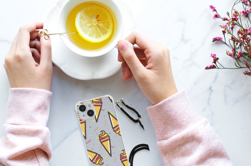Ben je op zoek naar een uniek telefoonhoesje voor je iPhone 14? Dan ben je bij B2C Telecom aan het juiste adres! Speciaal voor jou hebben we dit prachtige Icecream design in onze collectie hoesjes opgenomen. Het design wordt bedrukt op een Beschermhoes en is gemaakt van flexibel rubber. Het hoesje is perfect voor de actieve smartphonegebruiker door de opstaande randen/hoeken. Denk aan mensen die veel sporten, reizen of wandelen en net iets meer zekerheid willen als het op hun geliefde telefoon aankomt. Het design wordt alleen aan de bovenkant van het hoesje bedrukt en de randen blijven transparant. Aan de zijkanten zijn uitsparingen gemaakt waardoor je met gemak alle knoppen en poorten kunt bedienen. Wij adviseren om dit hoesje in combinatie met een screenprotector te gebruiken voor een langere levensduur van je telefoon. Wil je dit hoesje nog iets extra's geven? Voeg dan gratis je naam of een quote toe! Is dit design hoesje toch niet helemaal wat je zocht? Ontwerp dan zelf een hoesje in ons ontwerpprogramma.