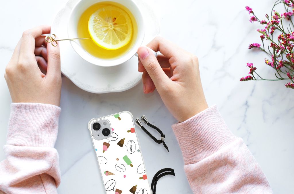 Ben je op zoek naar een uniek telefoonhoesje voor je iPhone 14? Dan ben je bij B2C Telecom aan het juiste adres! Speciaal voor jou hebben we dit prachtige IJsjes design in onze collectie hoesjes opgenomen. Het design wordt bedrukt op een Beschermhoes en is gemaakt van flexibel rubber. Het hoesje is perfect voor de actieve smartphonegebruiker door de opstaande randen/hoeken. Denk aan mensen die veel sporten, reizen of wandelen en net iets meer zekerheid willen als het op hun geliefde telefoon aankomt. Het design wordt alleen aan de bovenkant van het hoesje bedrukt en de randen blijven transparant. Aan de zijkanten zijn uitsparingen gemaakt waardoor je met gemak alle knoppen en poorten kunt bedienen. Wij adviseren om dit hoesje in combinatie met een screenprotector te gebruiken voor een langere levensduur van je telefoon. Wil je dit hoesje nog iets extra's geven? Voeg dan gratis je naam of een quote toe! Is dit design hoesje toch niet helemaal wat je zocht? Ontwerp dan zelf een hoesje in ons ontwerpprogramma.