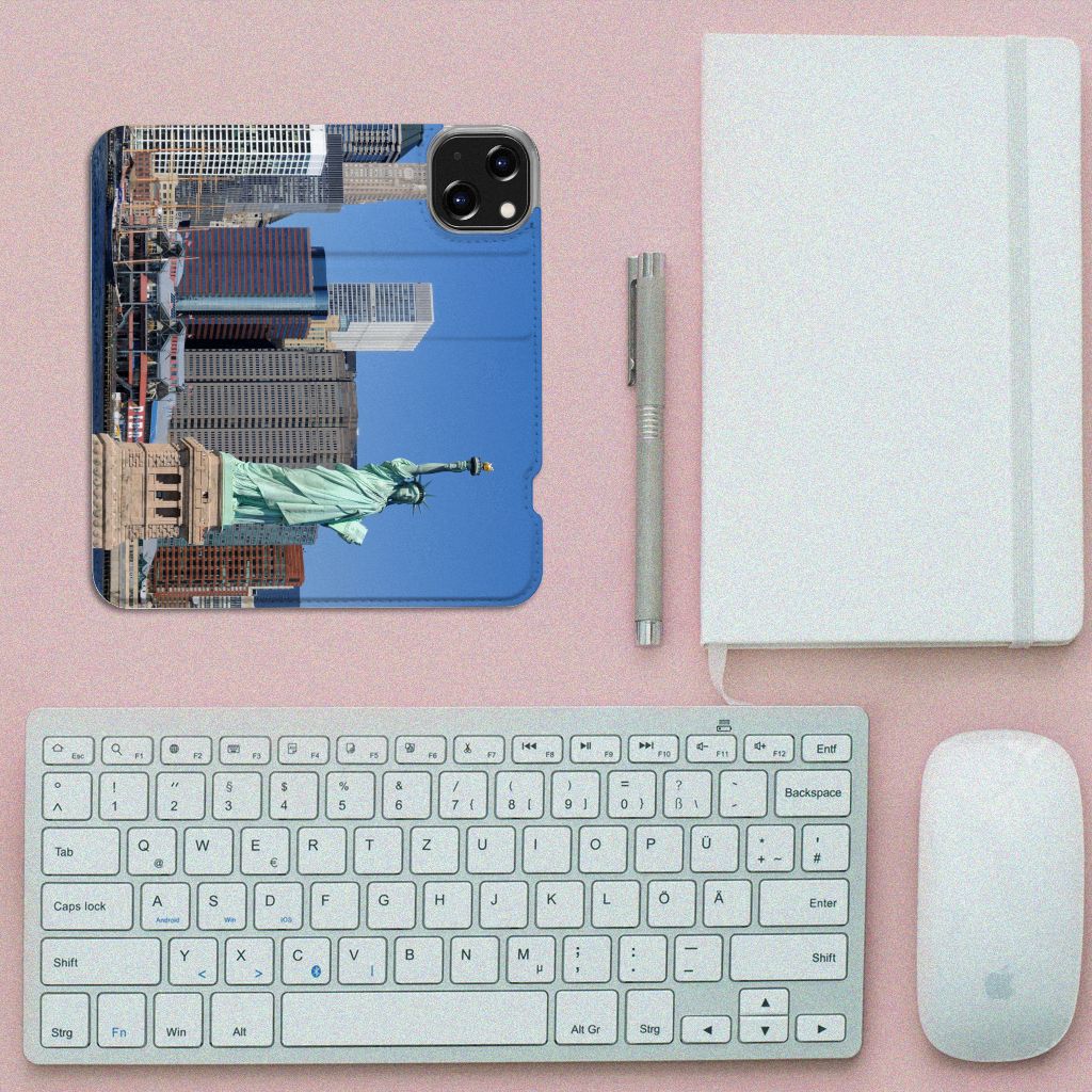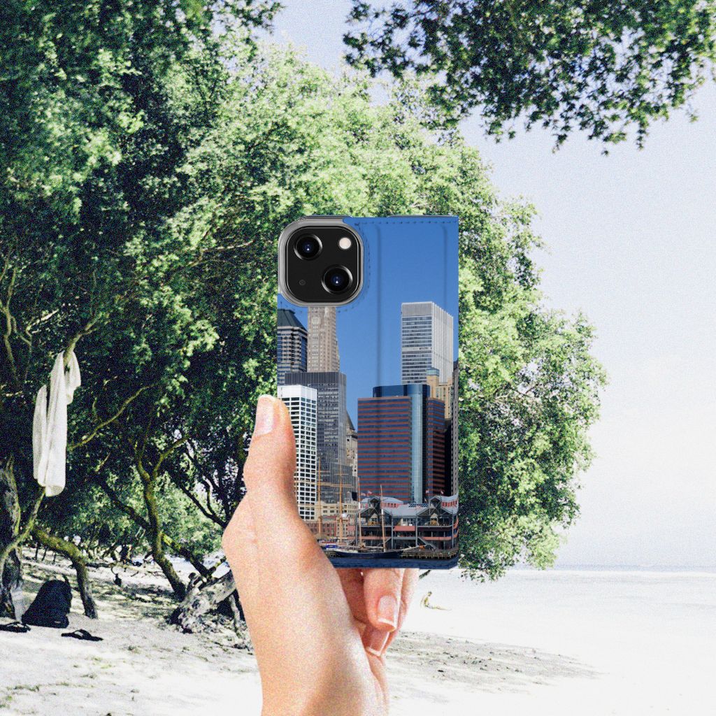 Natuurlijk mag een hoesje met de print van New York niet in onze collectie design hoesjes ontbreken. New York is immers de grootste stad van de Verenigde Staten van Amerika en een van de belangrijkste wereldsteden. Deze stad, ook wel New York City of NYC genoemd, moet je gewoon minstens eenmaal in je leven bezocht hebben. Doe je dat, dan gaat je telefoon natuurlijk mee en deze bescherm je met deze leuke iPhone 14 Book Cover met print van New York. Je pasje kun je in het opbergvakje aan de binnenzijde stoppen en de case sluit perfect af dankzij de magneet. The City That Never Sleeps, zo wordt New York ook wel genoemd. De print op deze stand case met print van New York, die een houder heeft van TPU, oogt zeer stijlvol.