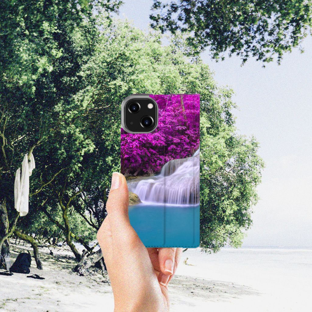 Van een waterval kun je een heel rustig gevoel krijgen, zeker als die op een iPhone 14 Book Cover staat dat jouw smartphone perfect beschermt tegen allerlei vormen van schade zoals krassen, barsten en scheuren. In de buurt van een waterval ben je tijdens warme zomerdagen niet alleen verzekerd van aangename verkoeling, het is ook een bijzonder rustgevende ervaring. Uit onderzoek blijkt zelfs dat watervallen een helend effect hebben op allerlei aandoeningen. Extra bijzonderheid aan de stand case vormen de paarse bossen op de achtergrond. Dit smartphonehoesje beschermt jouw telefoon aan alle zijden en beschikt over een opbergvakje voor pasjes en briefgeld. De case sluit perfect af dankzij de magneten van binnen. De houder aan de binnenzijde is van TPU. Alle zijden van het hoesje worden bedrukt. Een mooiere waterval met paarse achtergrond kom je op geen enkel ander hoesje tegen.