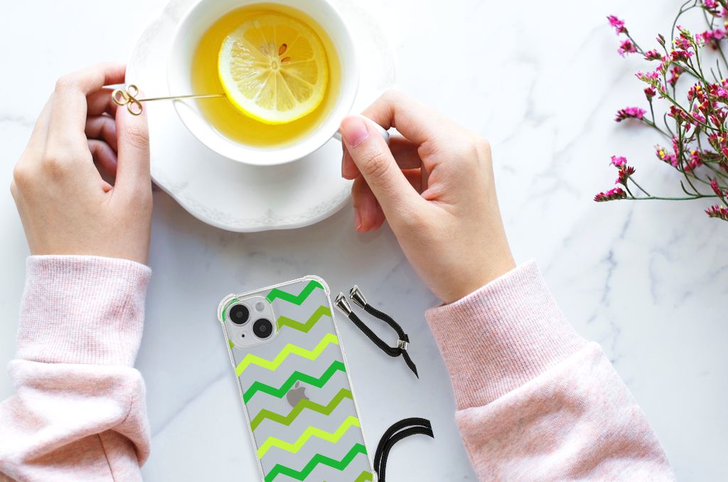 Ben je op zoek naar een uniek telefoonhoesje voor je iPhone 14? Dan ben je bij B2C Telecom aan het juiste adres! Speciaal voor jou hebben we dit prachtige Zigzag Groen design in onze collectie hoesjes opgenomen. Het design wordt bedrukt op een Doorzichtige Silicone Hoesje en is gemaakt van flexibel rubber. Het hoesje is perfect voor de actieve smartphonegebruiker door de opstaande randen/hoeken. Denk aan mensen die veel sporten, reizen of wandelen en net iets meer zekerheid willen als het op hun geliefde telefoon aankomt. Het design wordt alleen aan de bovenkant van het hoesje bedrukt en de randen blijven transparant. Aan de zijkanten zijn uitsparingen gemaakt waardoor je met gemak alle knoppen en poorten kunt bedienen. Wij adviseren om dit hoesje in combinatie met een screenprotector te gebruiken voor een langere levensduur van je telefoon. Wil je dit hoesje nog iets extra's geven? Voeg dan gratis je naam of een quote toe! Is dit design hoesje toch niet helemaal wat je zocht? Ontwerp dan zelf een hoesje in ons ontwerpprogramma.