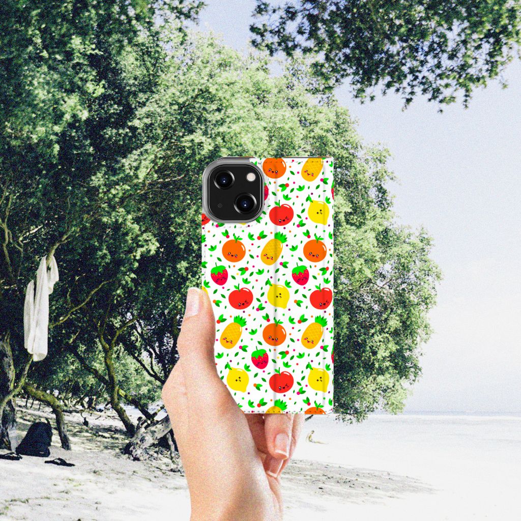 Een fris, fruitig en vrolijk hoesje, deze case met afbeeldingen van aardbeien, ananassen, appels, sinaasappels en citroenen. Minstens twee stuks fruit per dag wordt aanbevolen als dagelijkse hoeveelheid voor de mens. Dit verkleint de kans op allerlei ziekten. Dus met het aantal stukken fruit op de iPhone 14 Flip Style Cover zou je wel een maandje zoet moeten zijn. Met het hoesje zelf kun je je hele leven doen, dit is namelijk niet stuk te krijgen. Dit komt door het sterke en flexibele materiaal waarvan het gemaakt is. De vrolijk stemmende case het desing Fruits maakt jouw telefoon dus zeer duurzaam. Zorg ervoor dat jouw smartphone gezond blijft en kies voor dit hoesje met frivool fruit. Een stand case met fruit beschermt jouw telefoon aan alle kanten en beschikt over een 1 opbergvakje en een speciale standaard. Het hoesje met fruit wordt afgesloten met een magneet aan de binnenzijde. De houder aan de binnenzijde is van TPU.