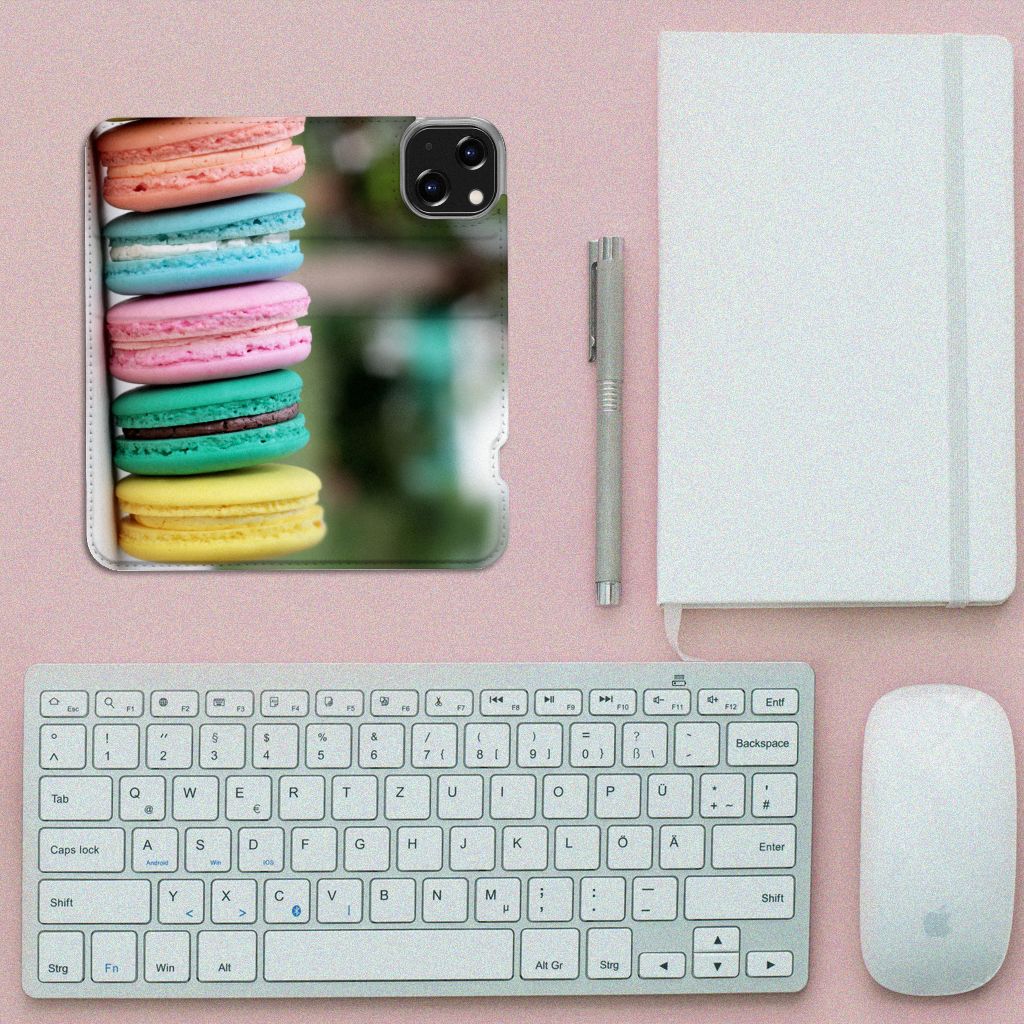 Dit stand hoesje met macarons is een zeer opvallende bescherming voor jouw smartphone. Macarons zijn Franse koekjes: kleine, rond en luchtig. Ze zijn aan elkaar geplakt met een zachte vulling. Ze worden in veel verschillende smaken gemaakt, herkenbaar aan de verschillende kleuren zoals chocolade (donkerbruin), mokka (middenbruin), kersen (rood), pistache (groen), aardbei (roze), framboos (karmijn), citroen (geel) en kokos (roomwit). Deze kleuren kun je natuurlijk ook zien op dit fraaie design hoesje met macarons. Heb je altijd al een iPhone 14 Flip Style Cover willen hebben met macarons? Grijp dan nu je kans. Deze case heeft zeer veel goede eigenschappen, zoals 1 opbergvakje en een magnetische sluiting aan de binnenkant. Dit design hoesje met macarons wordt aan alle zijden bedrukt. De houder aan de binnenkant van het hoesje is van TPU. De case heeft ook een handige standaard.