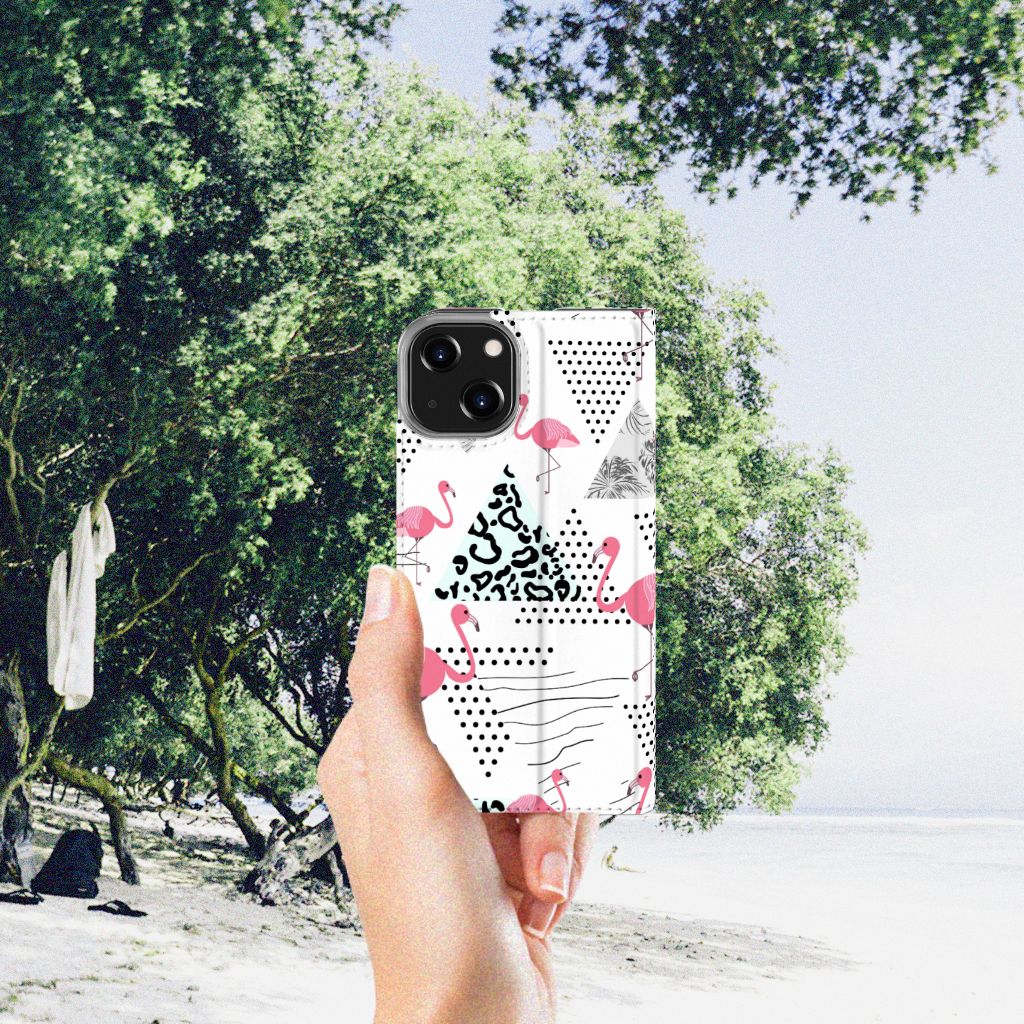 Een iPhone 14 Hoesje maken met Flamingo Triangle is in vele opzichten bijzonder. De rode flamingo op het hoesje komt oorspronkelijk uit het Caraïbische gebied. Stel dat je in deze regio vakantie viert, dan val je zonder meer op met dit hoesje met flamingo’s en driehoeken. Deze stand case biedt bescherming voor alle zijden van je telefoon. Jouw smartphone ligt goed opgeborgen in de TPU houder aan de binnenzijde en in dit gedeelte van het hoesje met flamingo’s en driehoeken zit de magnetische sluiting. Ook de palmbomen op deze stand case bieden het ultieme vakantiegevoel. De stand case met flamingo’s en driehoeken heeft vakjes voor pasjes en is op maat gemaakt.