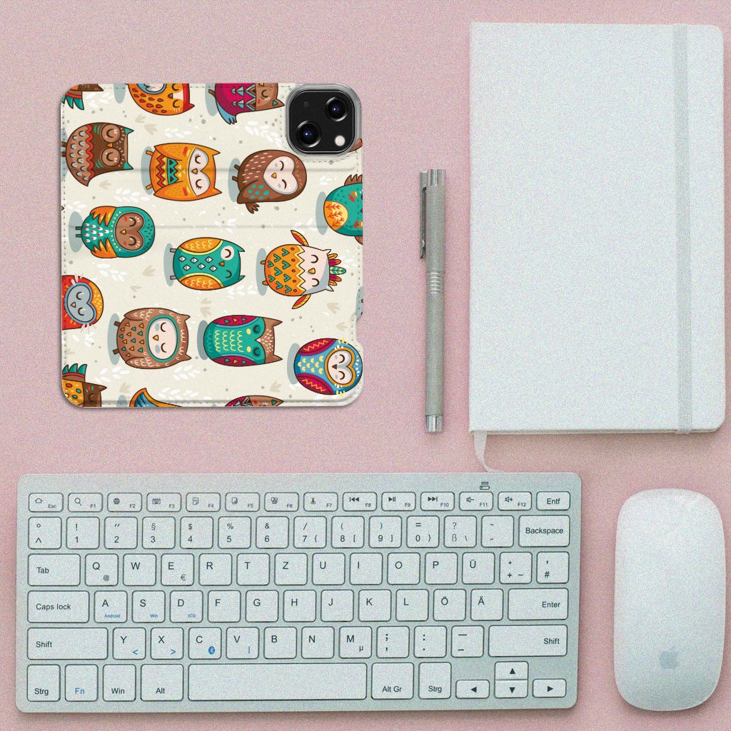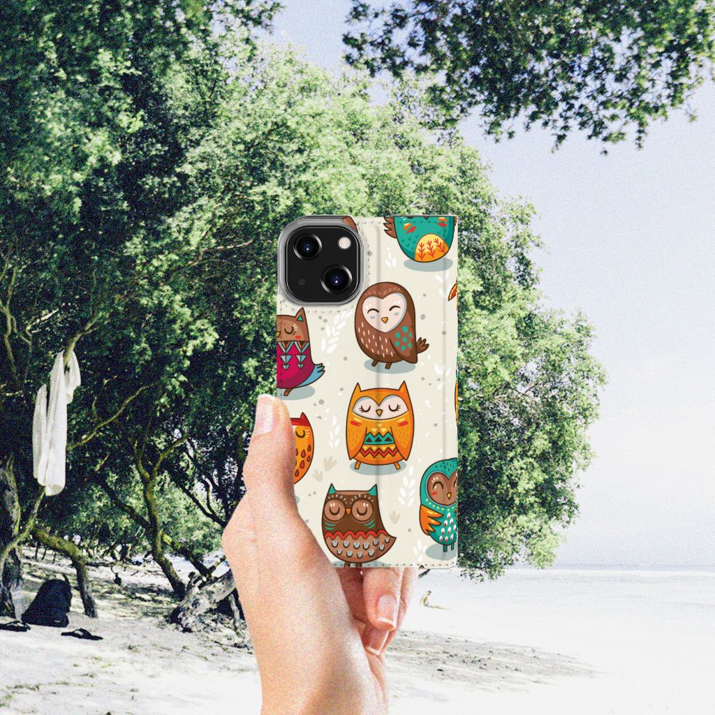 Deze iPhone 14 Hoesje maken met Vrolijke Uilen is echt iets voor de nachtbrakers onder ons. De uil is zoals je weet bij uitstek een vogel die in de nachtelijke uren actief is. Ben jij ook iemand die s ’nachts tot leven komt, dan is deze stand case met uilen in felle kleuren echt iets voor jou. Als je tot in de late uurtjes op stap bent, komt het goed uit dat jouw smartphone aan alle kanten goed is beschermd met deze stand case met uilen. De case met uilen heeft een magnetische sluiting aan de binnenkant, waardoor de hoes niet openklapt als die uit je handen valt. Jouw creditcard of pinpas heb je als het goed is veilig opgeborgen in het vakje aan de binnenzijde. De houder aan de binnenzijde van de case met print van uilen is van het flexibele TPU. De wat ruigere types hebben veel baat bij deze stand case met uilen in felle kleuren.