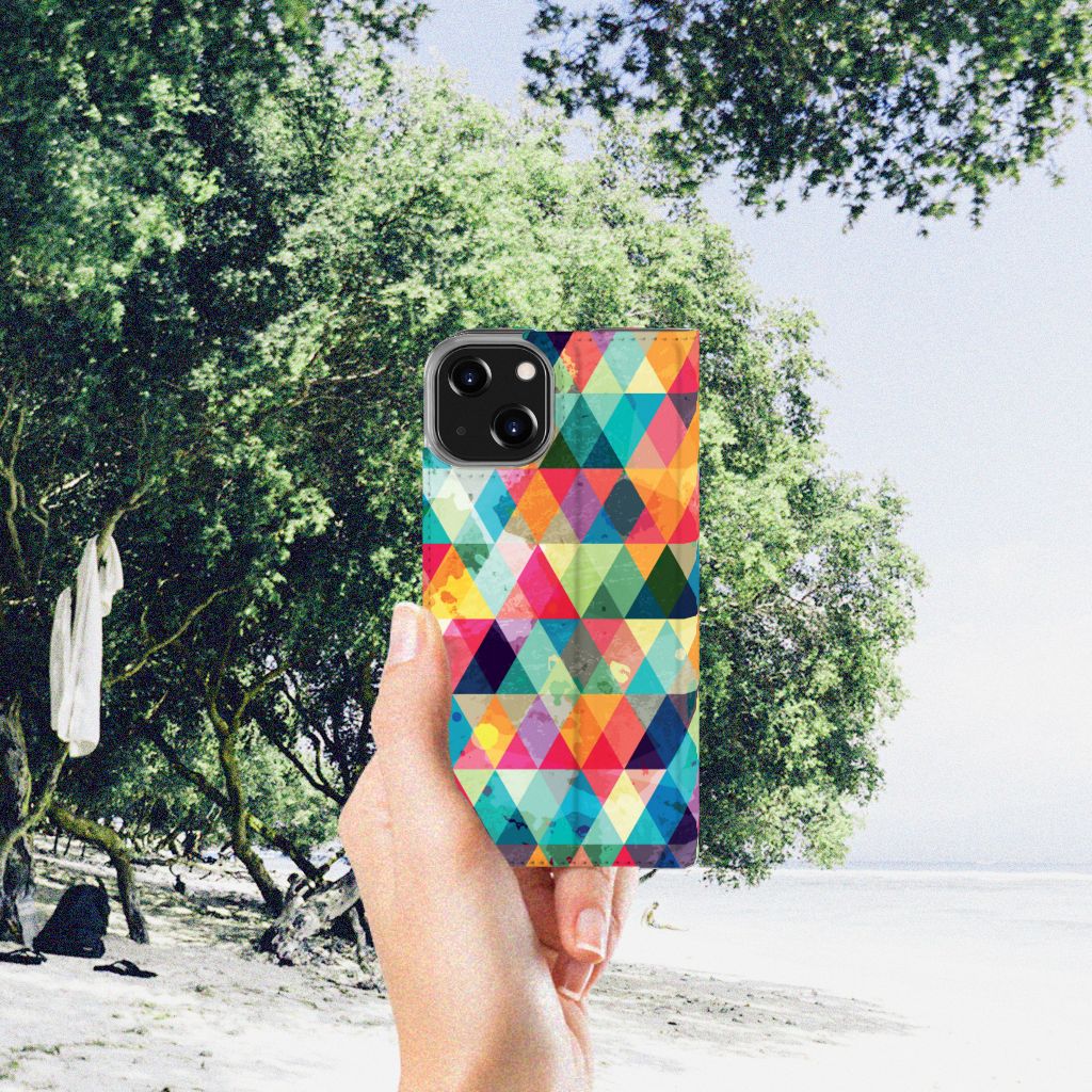 Van dit geruite design hoesje moet je een beetje houden. Maar als je het eenmaal in bezit hebt, ben je waarschijnlijk binnen no time verkocht. Het design heeft ruitjes in alle kleuren van de regenboog en door de grijze achtergrond kan het hoesje enigszins druk overkomen. Maar tegelijkertijd is dit de kracht van het hoesje. Met dit design hoesje Geruit zal je namelijk heel erg opvallen. Dit is voor veel vooral jonge smartphone gebruikers een belangrijk voordeel. Deze geruite print staat op een iPhone 14 Hoesje met Magneet. Dit zeer populaire smartphone hoesje heeft 1 vakje en is aan alle zijden bedrukt. Verder heeft de case een standaard en een magneet aan de binnenkant. Het ruitjespatroon zie je op kleding al enige tijd terugkomen en op deze stand case staat het ook erg goed. De houder is van TPU, de buitenzijde van PU-leer.