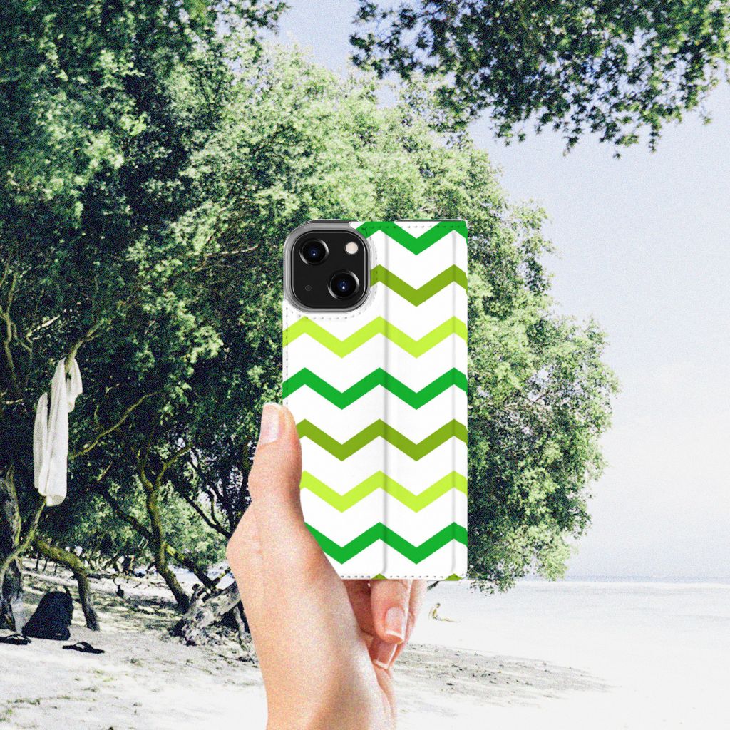 Dit zigzag groen design hoesje is speciaal ontworpen voor jouw telefoon. We hebben bewust verschillende stijlen groen gebruikt, zodat er voldoende sprake is van variatie. Dit groene hoesje ziet er super strak uit. Dat kan ook niet anders, als je weet dat onze designer zijn creativiteit heeft gebruikt. Hij schudt voortdurend nieuwe designs uit zijn mouw en dit zigzag groene hoesje is een van zijn fraaiste creaties. Een heel tof iPhone 14 Hoesje met Magneet, al zeggen we het zelf. Valt dit Zigzag Groen design hoesje goed bij jou? Bestel het dan vandaag nog en je hebt het morgen in huis. Het design staat op een stand case. Deze case beschermt jouw telefoon aan alle kanten en beschikt over een 1 opbergvakje en een speciale standaard. Het hoesje wordt afgesloten met een magneet aan de binnenzijde. De houder aan de binnenzijde is van TPU. Alle zijden van de stand case worden bedrukt.