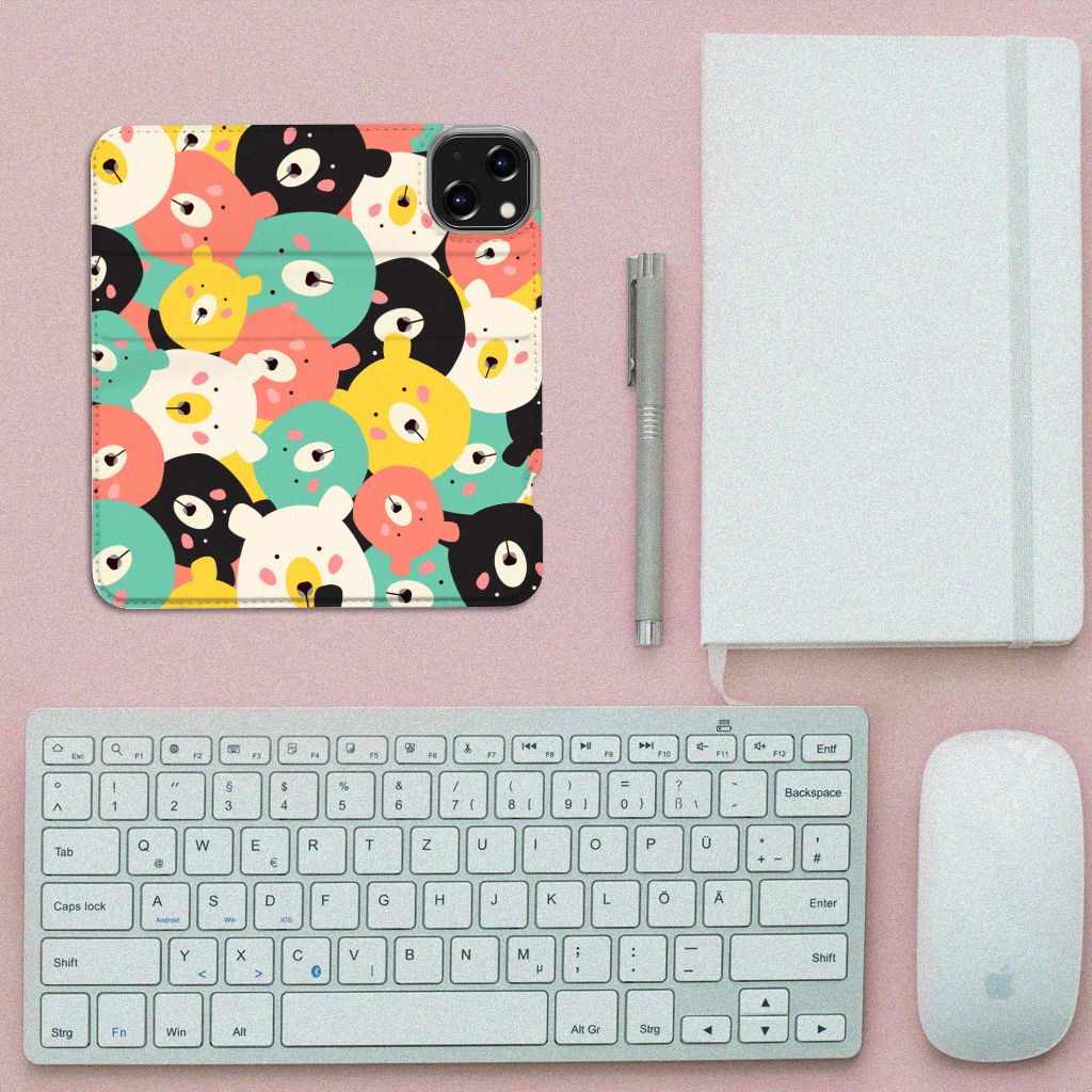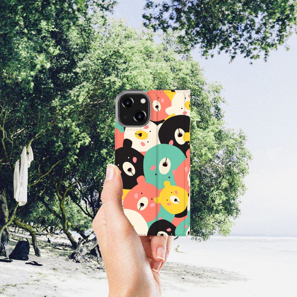 Op dit hoesje vind je een bereschattig ontwerp! Vergeef ons de woordgrap, maar hoe moeten we dit lieve ontwerp anders omschrijven? Op dit knuffelige ontwerp zie je leuke, getekende beertjes in vrolijke kleuren als geel, blauw en roze. Dankzij de contrasterende witte en zwarte beertjes vallen de felle kleurtjes nog meer op. Al met al is dit Magnet Case voor de iPhone 14 een perfect hoesje voor de knuffelberen onder ons. Dit populaire smartphonehoesje met het Bears-design heeft één vakje voor een pasje of briefgeld en is aan alle zijden bedrukt. Met de standcase zet je je telefoon gemakkelijk neer, zodat je je handen vrij hebt als je bijvoorbeeld een video wilt kijken. De binnenkant van de standcase is van grijs PU-leer. Dat is fijn, omdat je daardoor niet snel vlekken ziet op je hoesje.