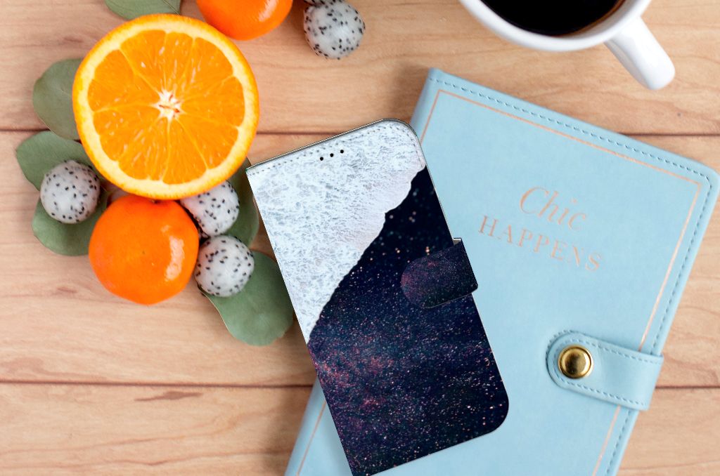 iPhone 14 Plus Book Case gemaakt van TPU-siliconen en kunstleer Sea in Space