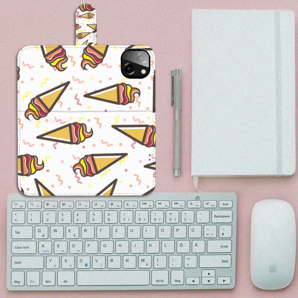 Een vrolijk iPhone 14 Plus Book Cover met daarop verschillende ijsjes. Als je daar geen zomers gevoel meer van krijgt, weten wij het ook niet meer. De zomer en ijsjes zijn onlosmakelijk met elkaar verbonden. Tijdens een bezoekje aan het strand mag een lekker ijsje bijvoorbeeld niet ontbreken. Een design hoesje met lekkere Icecream print past daar natuurlijk ook ontzettend goed bij. Jouw telefoon is helemaal beschermd met een boekhoesje met ijsjes design. De aankoop van deze case is een heerlijke investering, die zich gegarandeerd terugbetaalt. Alle zijden van dit hoesje worden bedrukt met ijsjes. De case heeft een lipje aan de buitenzijde voor het afsluiten van de telefoon en de houder aan de binnenzijde is van TPU. Onder alle weersomstandigheden zal deze case met verschillende opbergvakjes perfect functioneren, ook in de zomer met een ijsje in je hand. Dit smaakvolle hoesje is zeer goedkoop te bestellen en wordt zeer snel bezorgd.