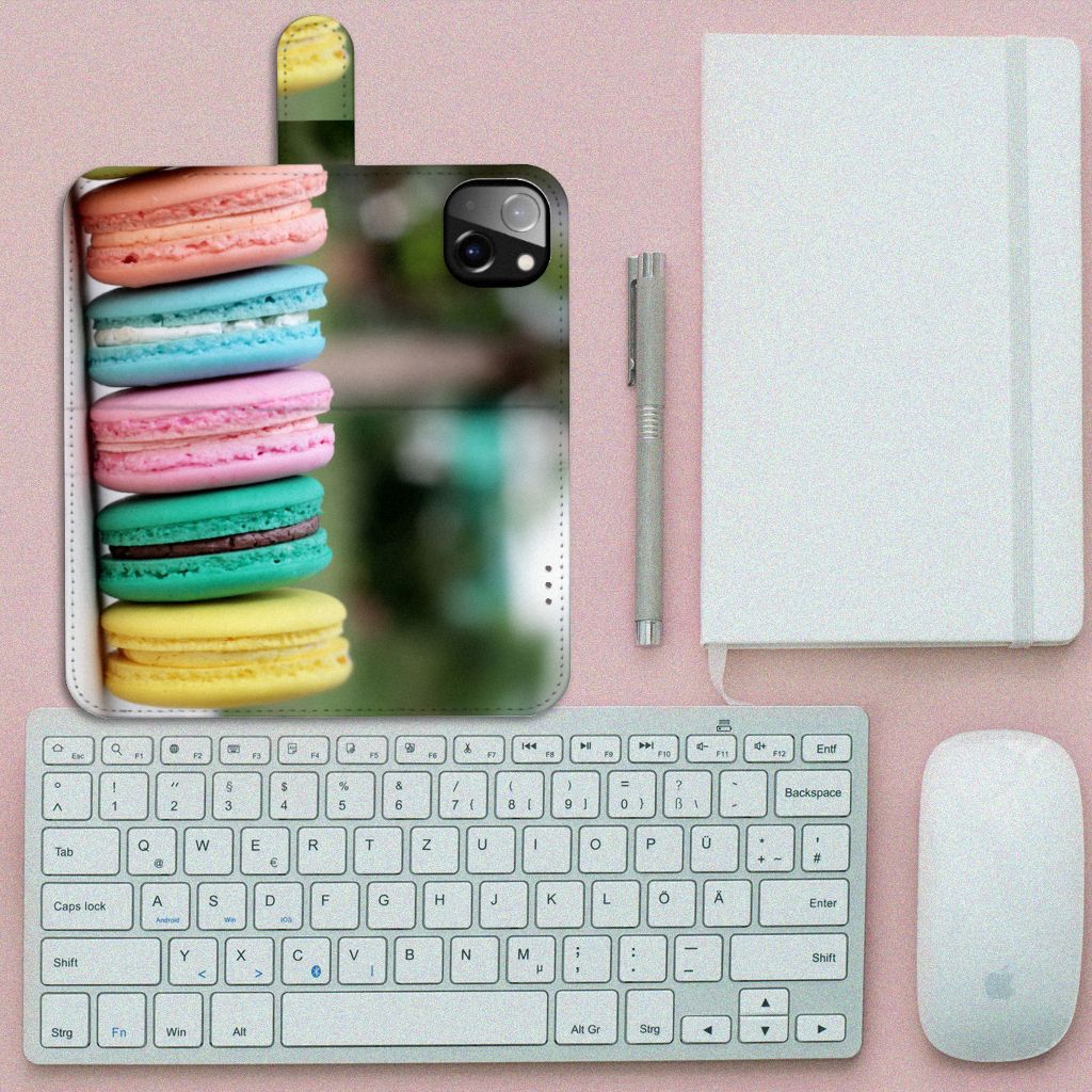 Dit hoesje met macarons is een zeer opvallende bescherming voor jouw smartphone. Macarons zijn Franse koekjes: kleine, rond en luchtig. Ze zijn aan elkaar geplakt met een zachte vulling. Ze worden in veel verschillende smaken gemaakt, herkenbaar aan de verschillende kleuren zoals chocolade (donkerbruin), mokka (middenbruin), kersen (rood), pistache (groen), aardbei (roze), framboos (karmijn), citroen (geel) en kokos (roomwit). Deze kleuren kun je natuurlijk ook zien op dit fraaie design hoesje met macarons. Heb je altijd al een iPhone 14 Plus Book Cover willen hebben met macarons? Grijp dan nu je kans. Een boekhoesje heeft zeer veel goede eigenschappen, zoals opbergvakjes aan de binnenkant en een magnetische sluiting in de vorm van een lipje aan de buitenzijde. Dit design hoesje met macarons wordt aan alle zijden bedrukt, zelfs het lipje krijgt een afbeelding van een macaron. De houder aan de binnenkant van het hoesje is van TPU.