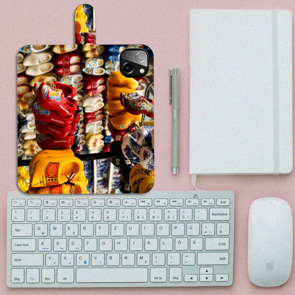 Een iPhone 14 Plus Flip Cover met klompen is een schitterende versiering voor jouw smartphone. Traditioneel worden klompen in een gele kleur gemaakt, soms met eenvoudige versieringen die van plaats tot plaats verschillen. Dit mooie boekhoesje met verschillende soorten klompen in verschillende kleuren is zo’n beetje de veiligste case die er bestaat. Het hoesje met klompen zorgt voor een volledige bescherming van je smartphone en wordt aan alle zijden bedrukt. Sommige klompen staan ook op het lipje aan de buitenzijde. Verder is de houder aan de binnenzijde van TPU. Met een hoesje met klompen in verschillende kleuren op alle zijden blijft jouw telefoon volledig in tact. Sta je liever zelf met je eigen mooie klompen op een hoesje? Ontwerp dan zelf een bookstyle case met je eigen foto’s en teksten! Behalve klompen kun je zelfs je gehele boerderij op het boekhoesje zetten