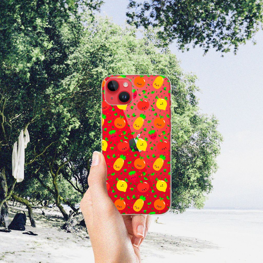 Een fris, fruitig en vrolijk hoesje, deze case met afbeeldingen van aardbeien, ananassen, appels, sinaasappels en citroenen. Minstens twee stuks fruit per dag wordt aanbevolen als dagelijkse hoeveelheid voor de mens. Dit verkleint de kans op allerlei ziekten. Dus met het aantal stukken fruit op de iPhone 14 Plus Siliconen Case zou je wel een maandje zoet moeten zijn. Met het hoesje zelf kun je je hele leven doen, dit is namelijk niet stuk te krijgen. Dit komt door het sterke en flexibele materiaal waarvan het gemaakt is. De vrolijk stemmende case het desing Fruits maakt jouw telefoon dus zeer duurzaam. Zorg ervoor dat jouw smartphone gezond blijft en kies voor dit hoesje met frivool fruit. Een tpu case met fruit wordt alleen aan de bovenkant bedrukt en is zeer flexibel. De randen van het hoesje blijven transparant en worden niet bedrukt met het fruit.