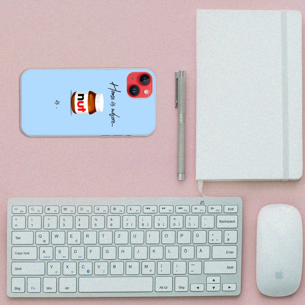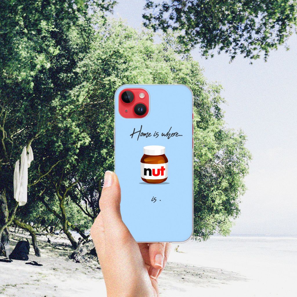 Ben je liefhebber van chocoladepasta, dan is dit het perfecte iPhone 14 Plus Siliconen Case voor jou. De chocoladepasta is enorm populair, dus is het niet zo heel gek dat je een ‘Nut Home’ tpu case in een blauwe kleur aantreft in ons assortiment design hoesjes met illustraties. Dit tpu hoesje is zeer flexibel en past altijd in je broekzak. Alleen de bovenkant van dit hoesje wordt door ons bedrukt in blauwe kleur met de pasta, op zeer duurzame manier. Mensen die houden van de bekendste pasta van het moment, kiezen voor deze blauwe tpu case. Er staan geen illustraties op de zijkanten van een tpu case. Je kunt ook een eigen tekst toevoegen aan het opvallende design.
