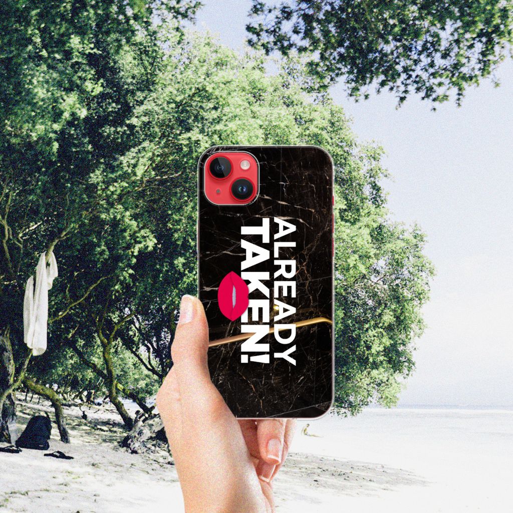 Met deze iPhone 14 Plus Siliconen hoesje met naam met Already Taken Black tekst maak je duidelijk dat jouw smartphone een kostbaar bezit is, waar je zeer lang over wilt beschikken. Je telefoon neem je waarschijnlijk vaak ter hand, dus dan zal de boodschap als je over dit hoesje beschikt zeker weten overkomen. De TPU case wordt alleen aan de bovenkant bedrukt en is zeer flexibel. De randen van het hoesje blijven transparant. Wil je een eigen tekst op je hoesje zetten? Dit kan ook, met onze Phone Case Designer. Deze unieke ontwerpmodule is ook geschikt om het design uit te breiden met foto’s, effecten en patronen.
