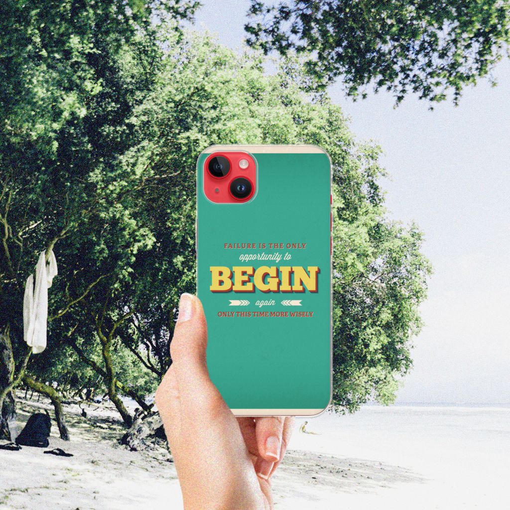 Ben je op zoek naar een uniek telefoonhoesje voor je iPhone 14 Plus? Dan ben je bij B2C Telecom aan het juiste adres! Speciaal voor jou hebben we dit prachtige Quote Begin design in onze collectie hoesjes opgenomen. Het design wordt bedrukt op een Siliconen hoesje met naam en is gemaakt van flexibel rubber. Het design wordt alleen aan de bovenkant van het hoesje bedrukt en de randen blijven transparant. Aan de zijkanten zijn uitsparingen gemaakt waardoor je met gemak alle knoppen en poorten kunt bedienen. Wij adviseren om dit hoesje in combinatie met een screenprotector te gebruiken voor een langere levensduur van je telefoon. Wil je dit design hoesje nog iets extra's geven? Voeg dan gratis je naam of een quote toe! Is dit design hoesje toch niet helemaal wat je zocht? Ontwerp dan zelf een hoesje in ons ontwerpprogramma.