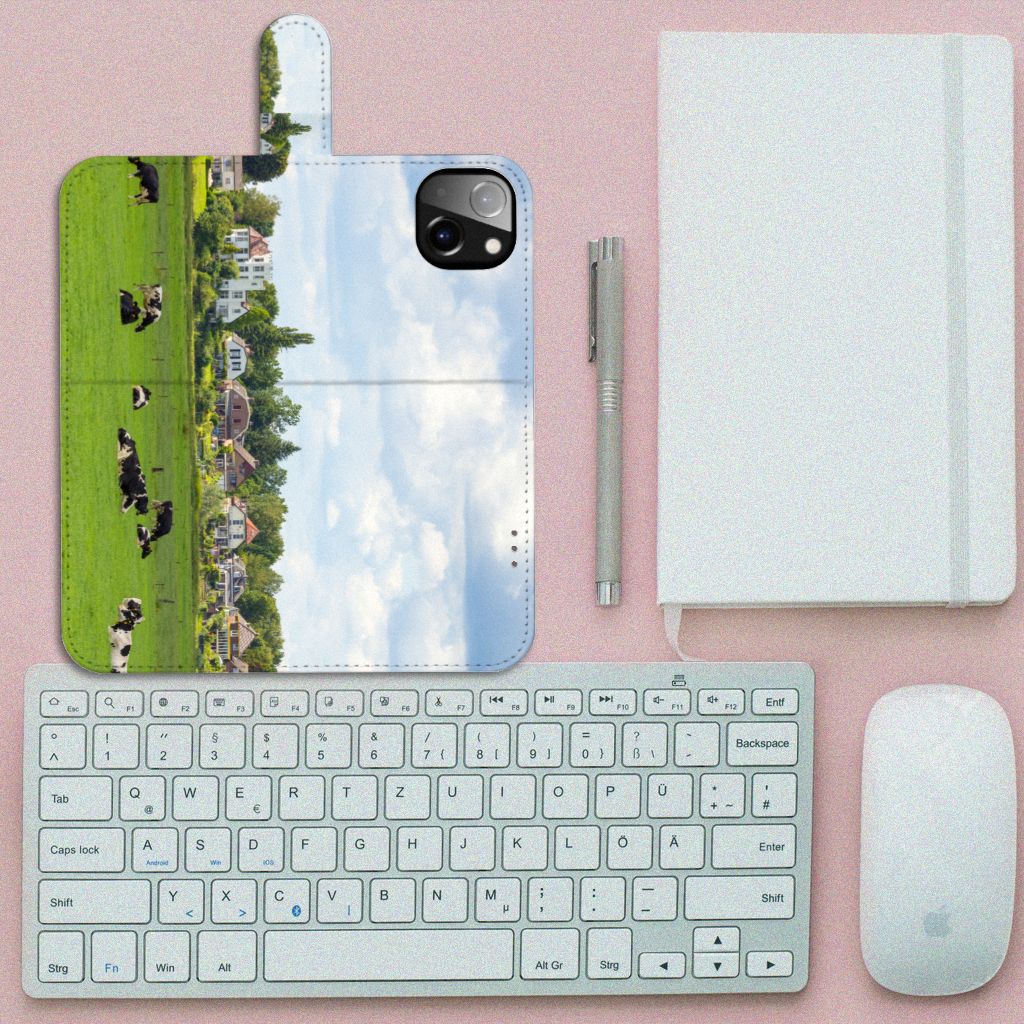 De koe is een kuddedier en graast het liefst met soortgenoten. Dit levert ook mooie plaatjes op, zoals je kunt zien op dit boekhoesje met Koeien. Dit smartphone hoesje met koeien ziet er super strak uit en is voorzien van verschillende opbergvakjes. Een iPhone 14 Plus Telefoonhoesje met Pasjes met grazende koeien beschermt jouw smartphone perfect. Alle zijden worden bedrukt met de koeienprint, net als het afsluitlipje aan de buitenkant. Koeien hebben graasperioden van ongeveer een uur. Ze herkauwen het liefst liggend, zoals op het hoesje. Zo goed als grazen voelt voor koeien, zo duurzaam zal jouw smartphone worden met dit boekhoesje met koeien. De binnenkant van het boekhoesje met koeien is van TPU, de buitenzijde van leer.