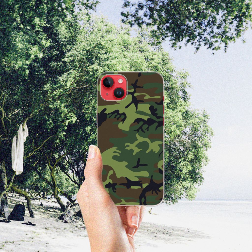 Voel je jezelf verbonden met het leger, dan zal deze iPhone 14 Plus TPU bumper je zeker bevallen. Het tpu hoesje beschikt namelijk over donkere camouflage kleuren. Deze worden vaak gebruikt door mensen die zich graag willen mengen in hun omgeving. Dit Army Dark hoesje is er dus voornamelijk in kleuren die in de natuur voorkomen, zodat je één wordt met je achtergrond. Beschermt de krijgsmacht volk en vaderland, dit hoesje in donkere camouflage kleuren zal jouw telefoon onder alle omstandigheden schadevrij houden. Met een hoesje in dit soort kleuren zal je niet zo snel opvallen. Het design staat op een TPU case. Dit hoesje wordt alleen aan de bovenkant bedrukt met donkere camouflage kleuren en is zeer flexibel. De randen van het hoesje blijven transparant.