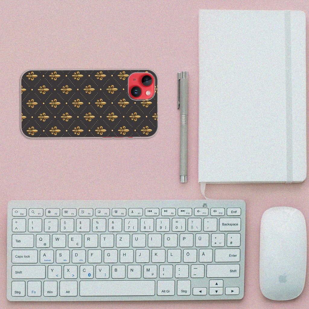 Hét symbool van het Franse koningshuis, de fleur-de-lis (ook fleur-de-lys of Franse lelie), mag natuurlijk niet ontbreken in onze collectie design hoesjes. De naam betekent letterlijk lelie-bloem. Deze Franse Lelie kunnen we op verschillende soorten cases printen, zoals een zeer praktische en onderscheidende tpu case. Een iPhone 14 Plus TPU bumper met Franse Lelie ziet er niet alleen ontzettend chique uit, het is dankzij onder meer het zeer flexibele materiaal zeer praktisch. Het is niet helemaal duidelijk welke bloem model heeft gestaan voor het Franse symbool. Wel is duidelijk dat de Franse lelie volledig tot wasdom komt op deze handige tpu case. We bedrukken de tpu case op het moment dat jij deze bestelt. Op de bovenzijde komt de Franse lelie te staan, de zijkanten blijven transparant.