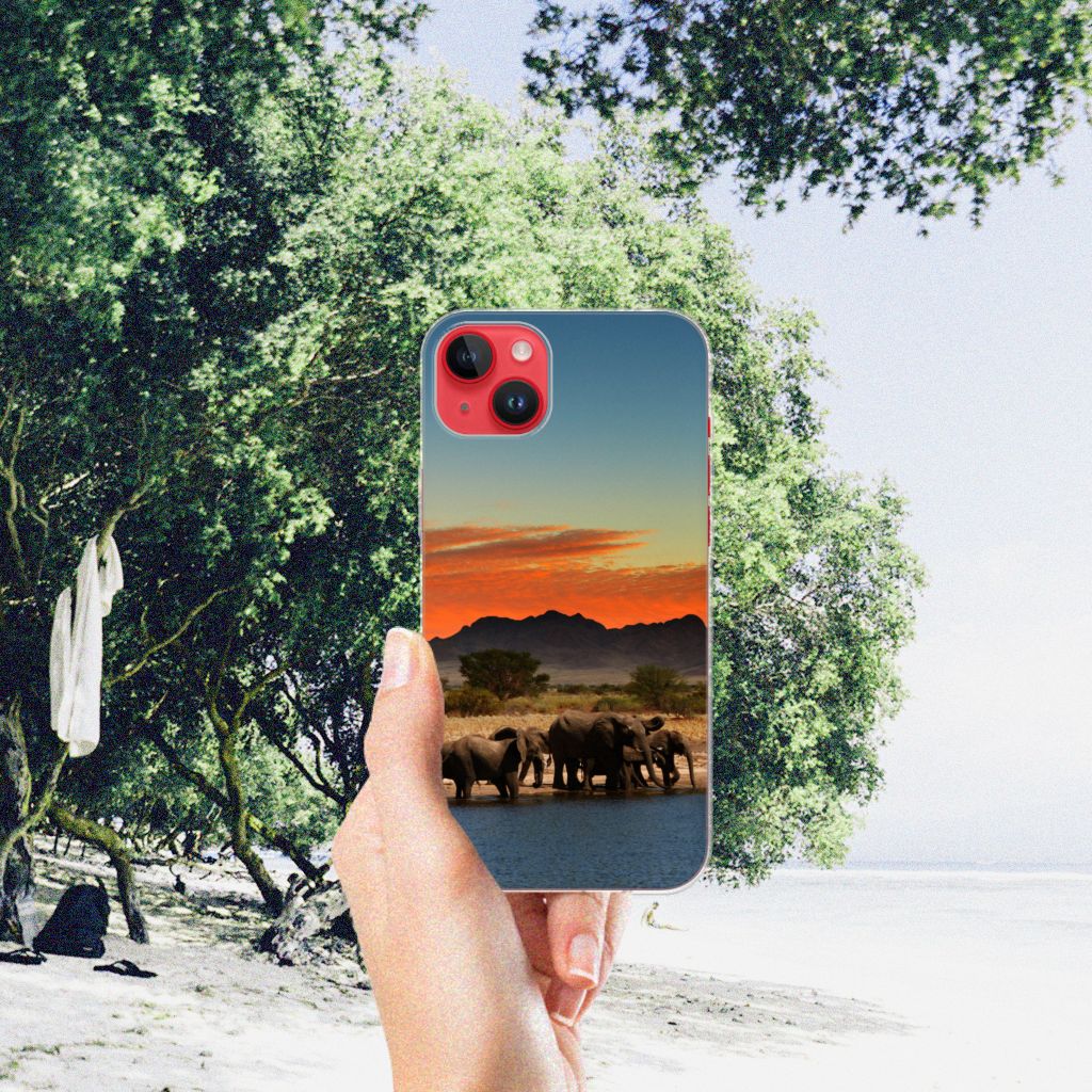 Dit hoesje is zo sterk als een olifant. Dat is goed nieuws, want jouw telefoon heeft een zeer goede bescherming nodig. Dat krijg je met dit design hoesje met print van Olifanten. De Afrikaanse olifant, het allergrootste landdier ter wereld, heeft waarschijnlijk het meest te lijden gehad van stroperij om het ivoor. Deze dieren verdienen dus een goede bescherming, net als jouw smartphone. Met een iPhone 14 Plus TPU Hoesje met olifant erop krijg je dit zeker voor elkaar. De tpu case beschermt vooral de achterkant en zijkanten van je telefoon en is gemaakt van onbreekbaar materiaal. De sterke olifant komt zeer goed tot zijn recht op deze case, die zeer flexibel is. Alleen de bovenzijde van de case wordt bedrukt met olifanten, de zijkanten blijven transparant.