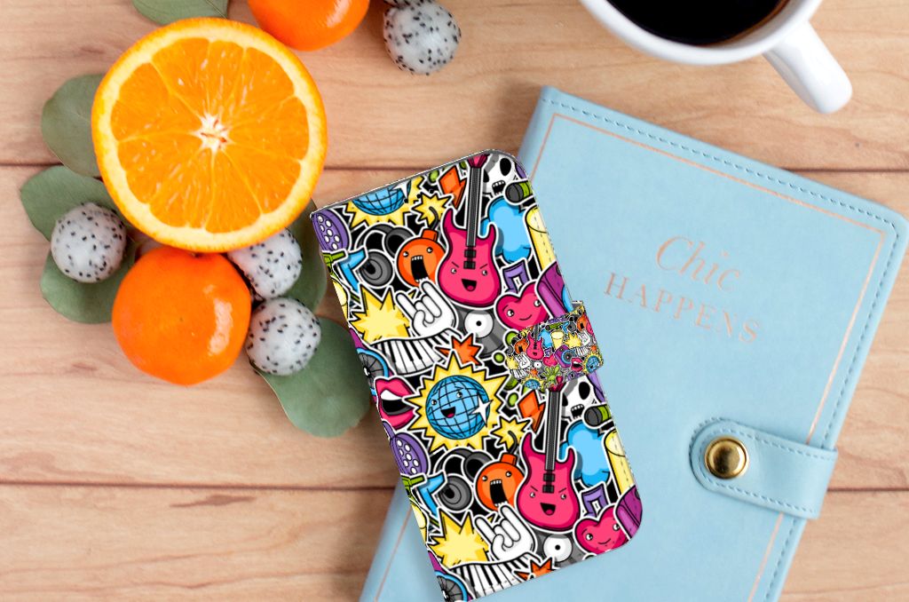 iPhone 14 Plus Walletcase met magnetisch lipje als sluiting Punk Rock