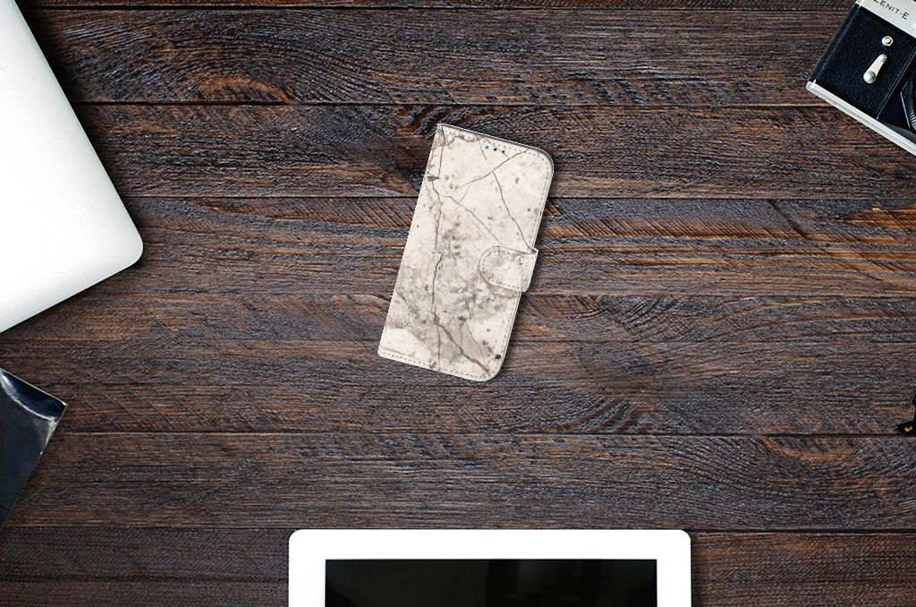 iPhone 14 Pro Bookcase met pasjes Marmer Beige
