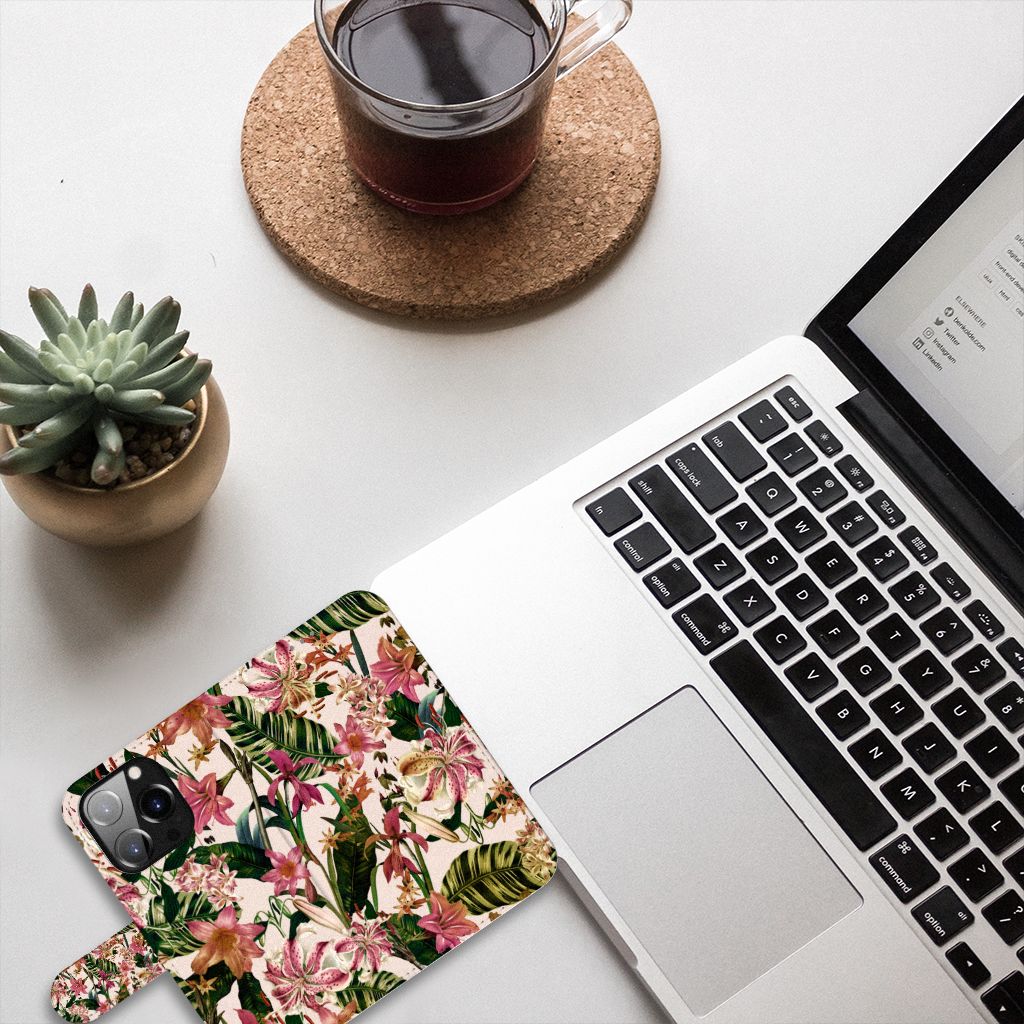 iPhone 14 Pro Hoesje met ruimte voor pasjes Flowers