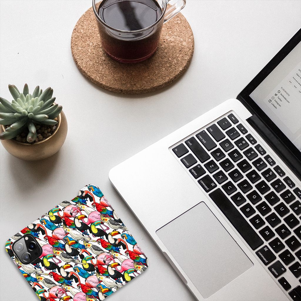 Dit exotische hoesje vol prachtige vogels is een genot voor het oog. Dankzij de felgekleurde toekans, papegaaien, flamingo’s en kaketoes op dit design word je meteen vrolijk als je naar dit hoesje kijkt. Je waant je meteen in de tropen met dit bonte gezelschap tegen een witte achtergrond. Het ontwerp staat op een Hoesje maken voor de iPhone 14 Pro. Dit populaire smartphonehoesje met het beton-design heeft één vakje voor een pasje of briefgeld en is aan alle zijden bedrukt. Met de standcase zet je je telefoon gemakkelijk neer, zodat je je handen vrij hebt als je bijvoorbeeld een video wilt kijken. De binnenkant van de standcase is van grijs PU-leer. Dat is fijn, omdat je daardoor niet snel vlekken ziet op je hoesje.