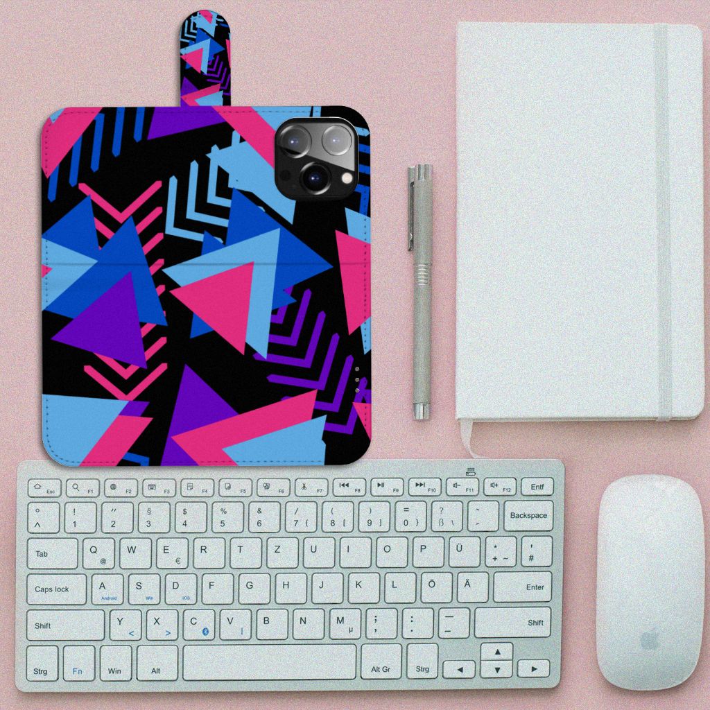 Dit fraaie hoesje met het design Funky Triangle is alles behalve eenvoudig en sober. Dat komt goed uit, want je hebt natuurlijk ook geen doorsnee telefoon gekocht. Mocht je dat wel hebben gedaan, dan wordt hij meteen speciaal als je een iPhone 14 Pro Max Book Case koopt voor een spotprijsje. Een ding is zeker: opvallen ga je beslist met dit hoesje met paarse, roze en blauwe driehoeken. Jij zult in je element zijn met dit design hoesje met paarse, roze en blauwe driehoeken, omdat het er schitterend uitziet en jouw telefoon perfect beschermt. Het smartphonehoesje beschermt jouw telefoon aan alle zijden en beschikt over verschillende houders voor pasjes en briefgeld. De case sluit perfect af met een lipje aan de buitenkant. De houder aan de binnenzijde is van TPU. Alle zijden van het hoesje worden bedrukt, inclusief het lipje. De paarse, roze en blauwe driehoeken maken de case helemaal af.