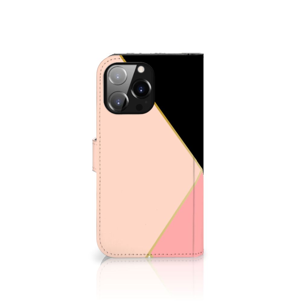 iPhone 14 Pro Max Bookcase met ruimte voor 3 pasjes Zwart Roze Vormen