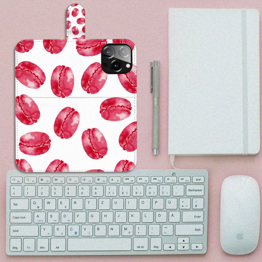 Dit hoesje met Pink Macarons is een zeer opvallende bescherming voor jouw smartphone. Macarons zijn Franse koekjes: kleine, rond en luchtig. Ze worden in veel verschillende smaken gemaakt, herkenbaar aan de verschillende kleuren zoals chocolade (donkerbruin), mokka (middenbruin), kersen (rood), pistache (groen), aardbei (roze), framboos (karmijn). Deze kleuren kun je niet allemaal zien op dit fraaie design hoesje met roze macarons. Heb je altijd al een iPhone 14 Pro Max Book Cover willen hebben met roze macarons? Grijp dan nu je kans. Een boekhoesje heeft zeer veel goede eigenschappen, zoals opbergvakjes aan de binnenkant en een magnetische sluiting in de vorm van een lipje aan de buitenzijde. Dit design hoesje met roze macarons wordt aan alle zijden bedrukt, zelfs het lipje krijgt een afbeelding van een roze macaron. De houder aan de binnenkant van het hoesje is van TPU.