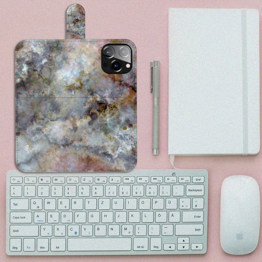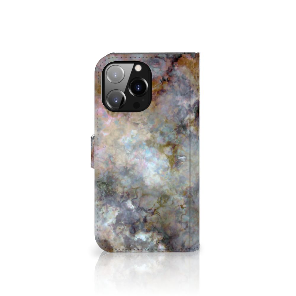 iPhone 14 Pro Max Bookcase met ruimte voor 3 pasjes Marmer Grijs